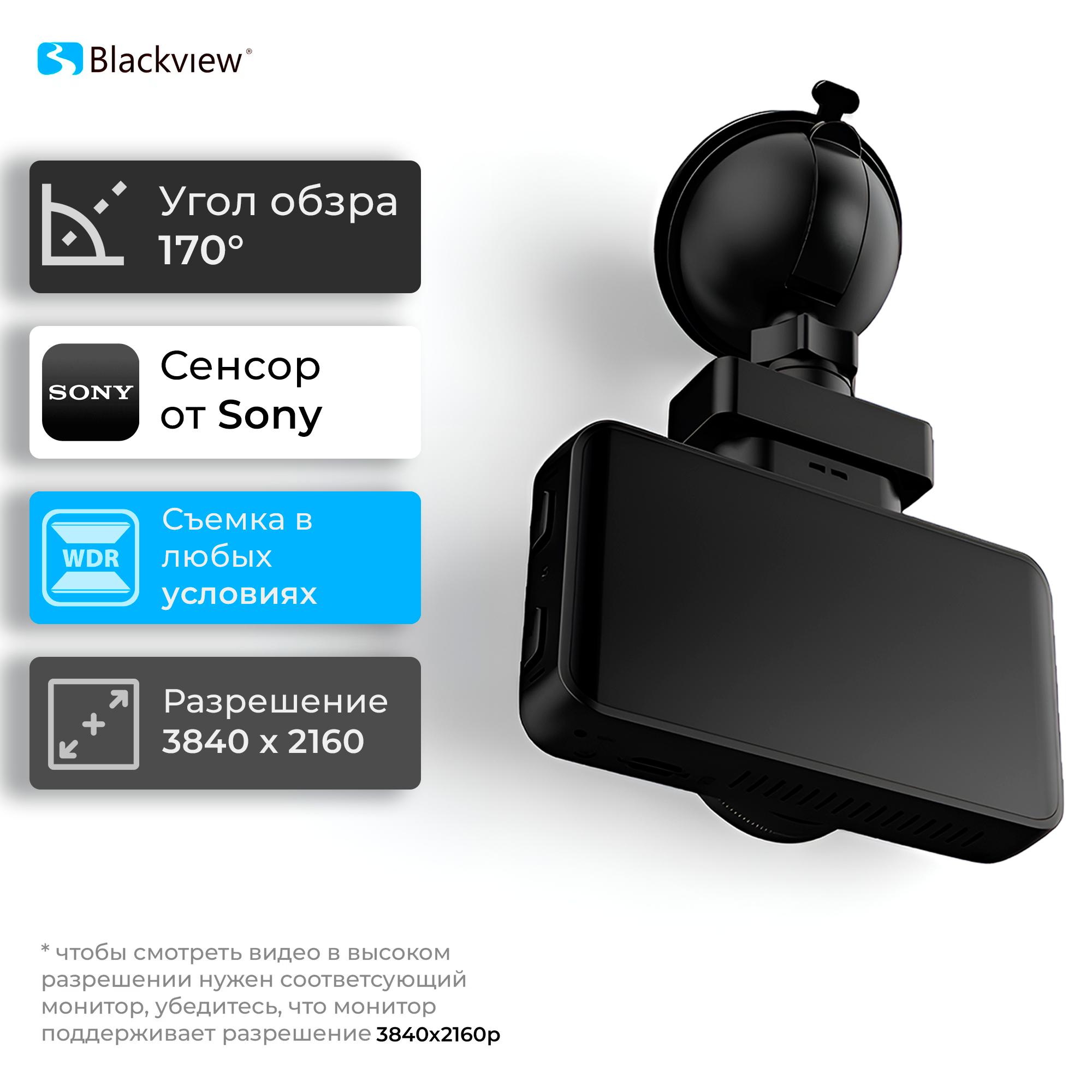 Автомобильный видеорегистратор "Blackview V", GPS/ГЛОНАСС, запись видео 2304х1296, черный