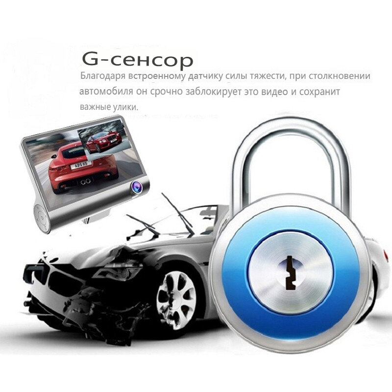 Купить 3-линзовый 4,0-дюймовый видеорегистратор для вождения, датчик силы тяжести, изображение задним ходом