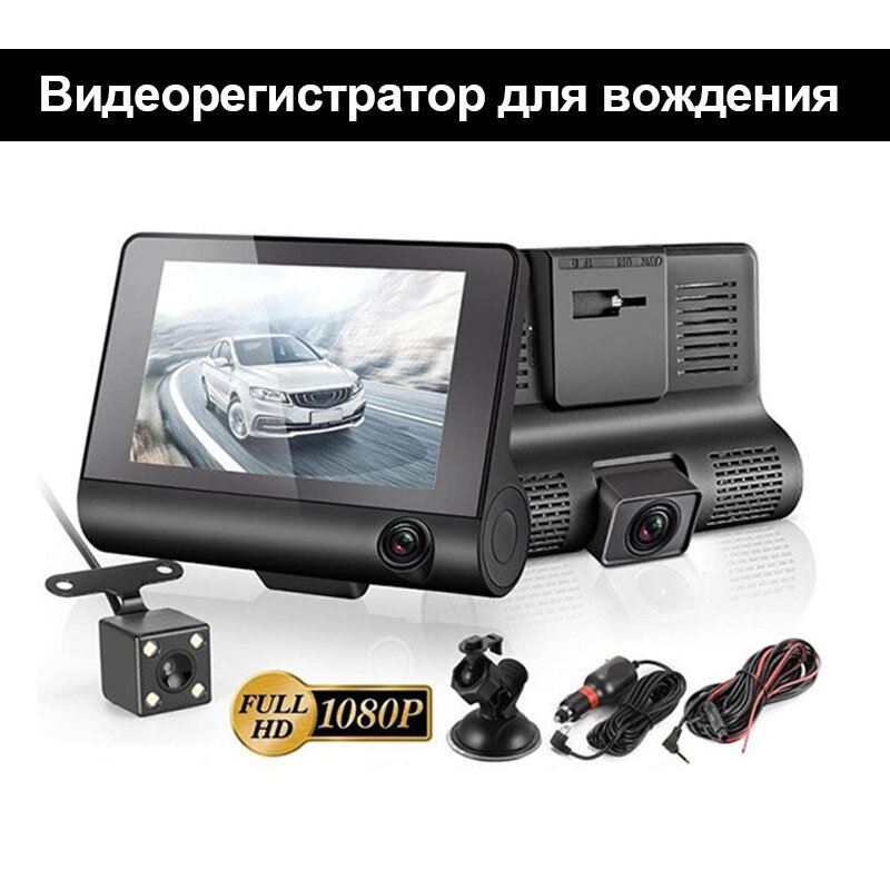 3-линзовый 4,0-дюймовый видеорегистратор для вождения, датчик силы тяжести, изображение задним ходом интересное: