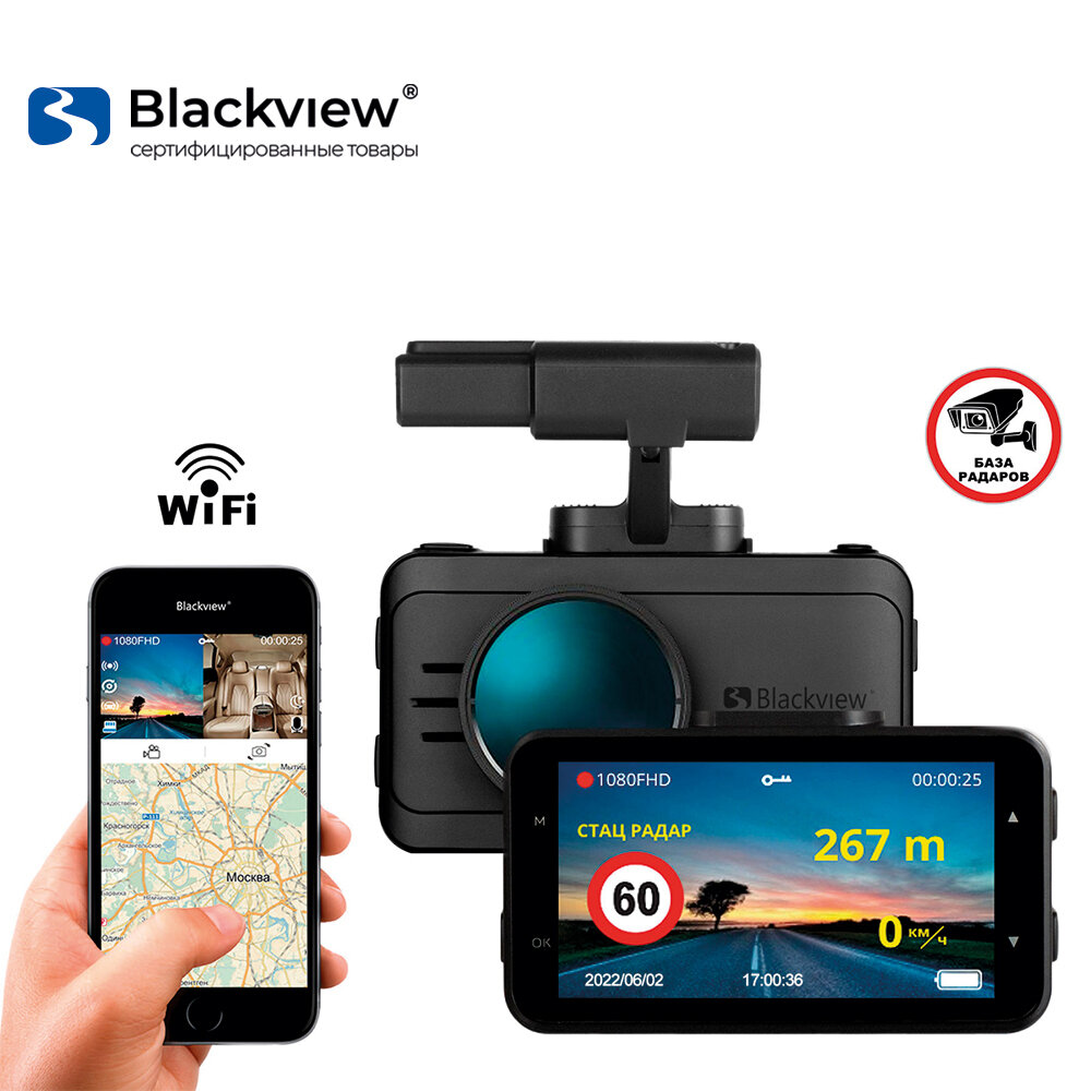 Комбо-устройство / Видеорегистратор с оповещениями о камерах Blackview V GPS/ГЛОНАСС, 1296p с функцией GPS радара, WiFi, сенсор SONY