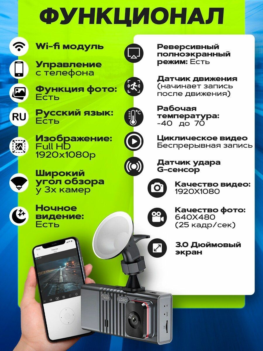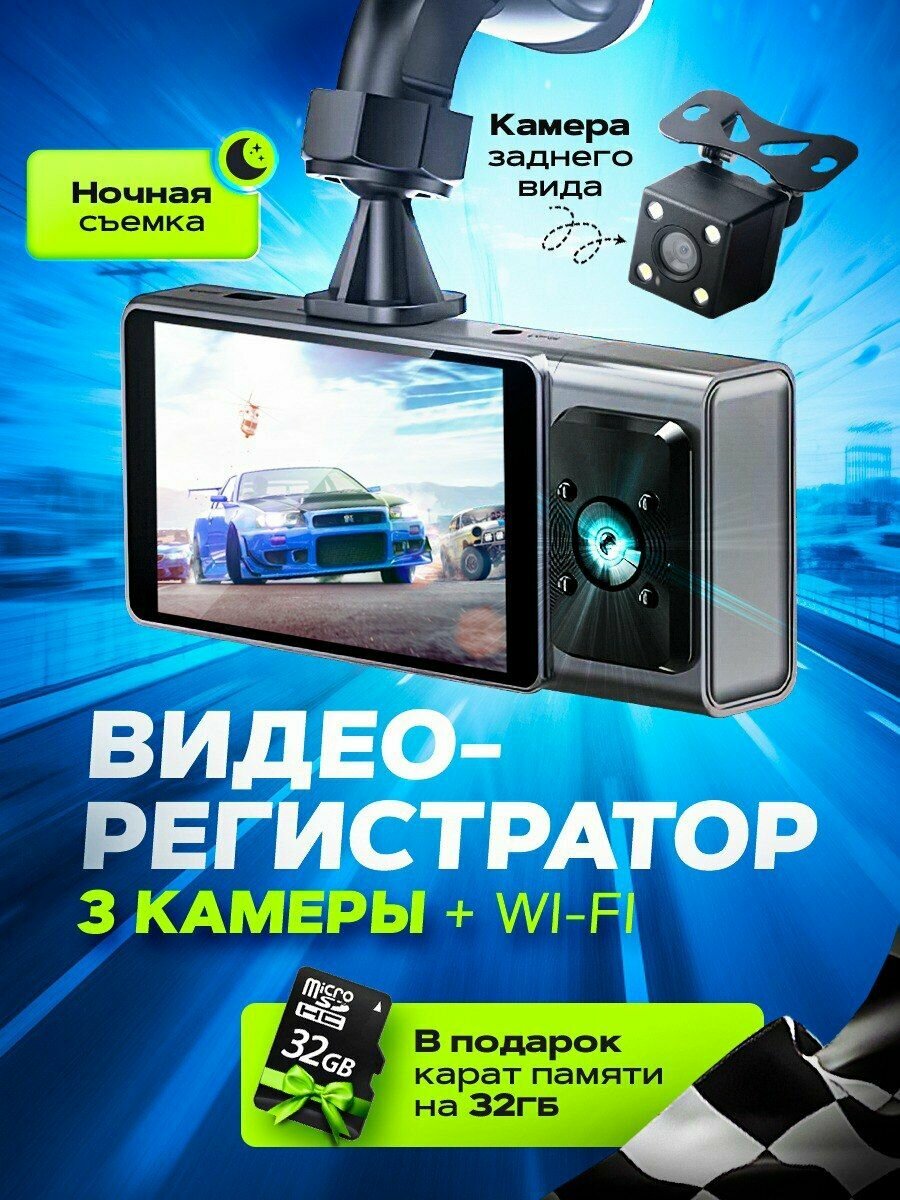 Купить Видеорегистратор для автомобиля 3 камеры и wifi