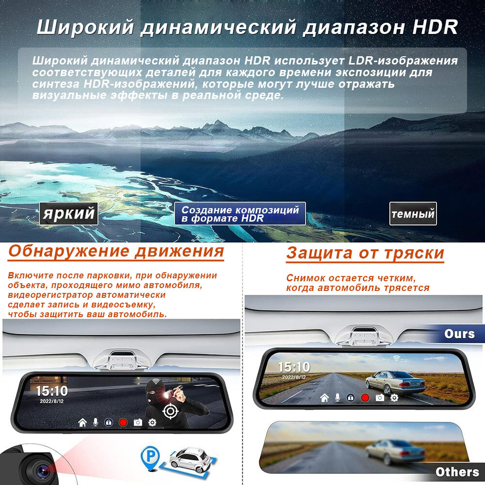 9,66-дюймовый видеорегистратор с разрешением 1440P WIFI для вождения, две камеры, TF-карта емкостью 32 ГБ интересное: