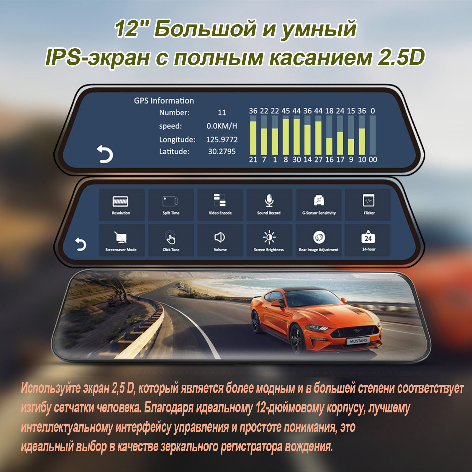 12-дюймовый автомобильный видеорегистратор с двумя объективами, Wi-Fi GPS 64G интересное: