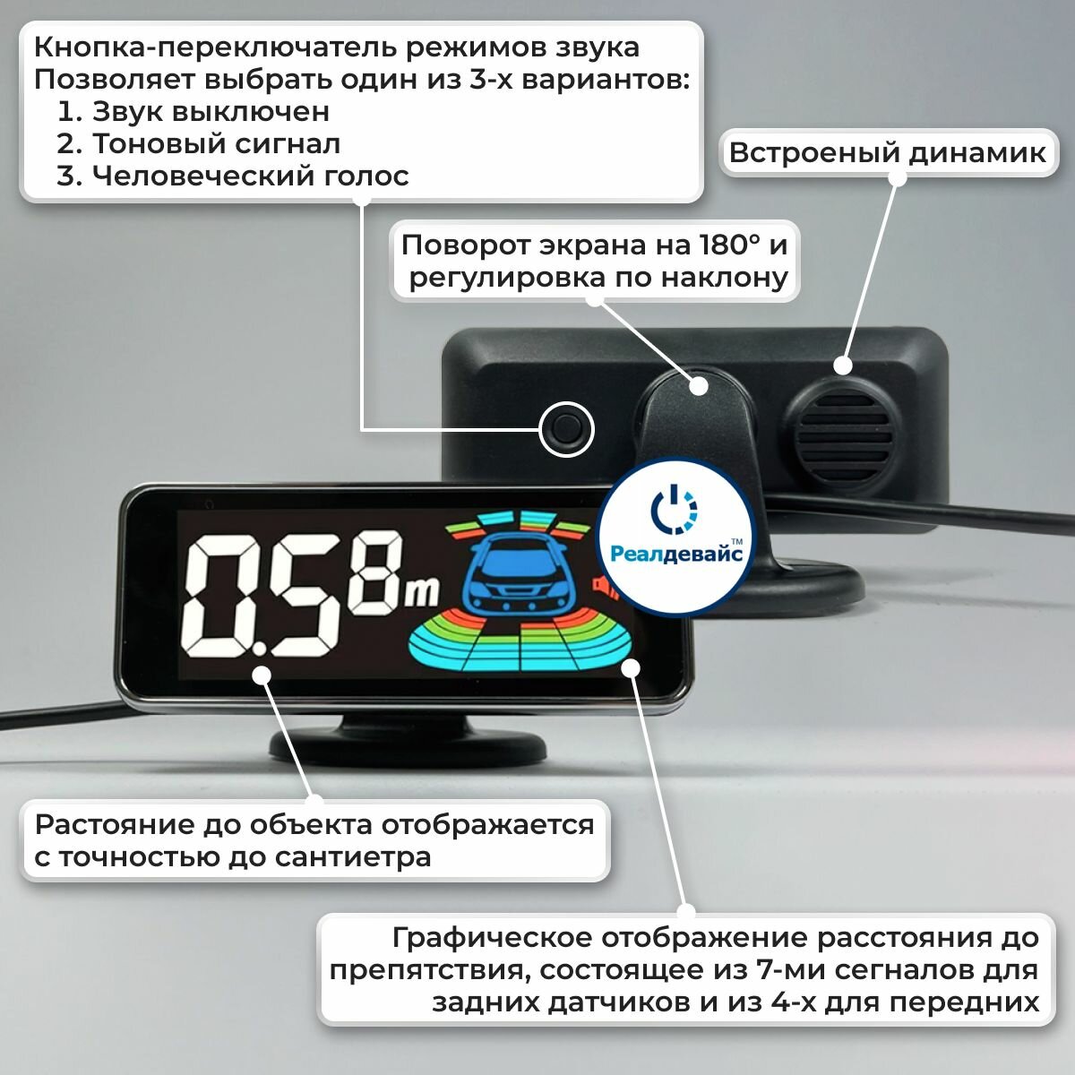 Парктроник автомобильный на 8 датчиков с экраном, белый интересное: