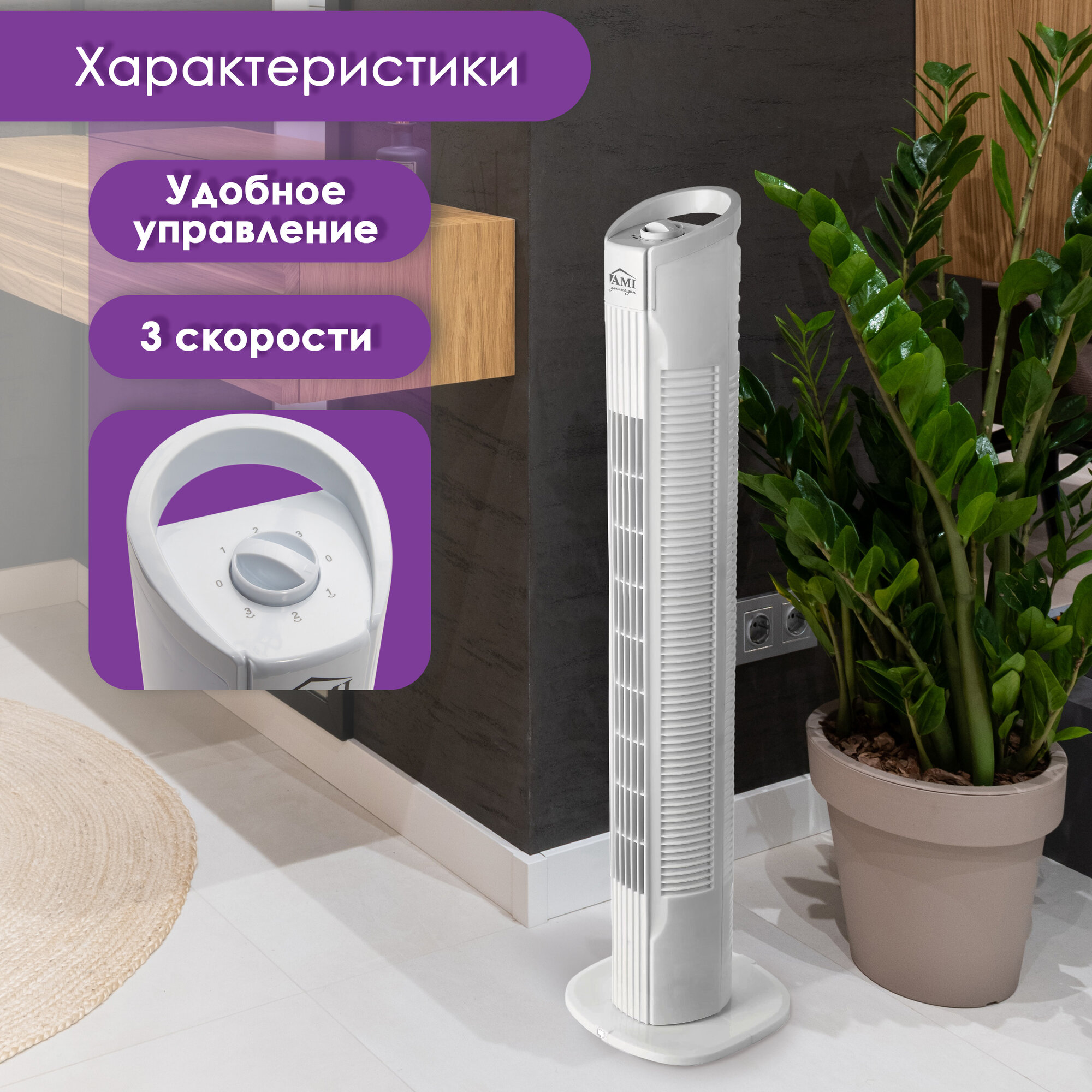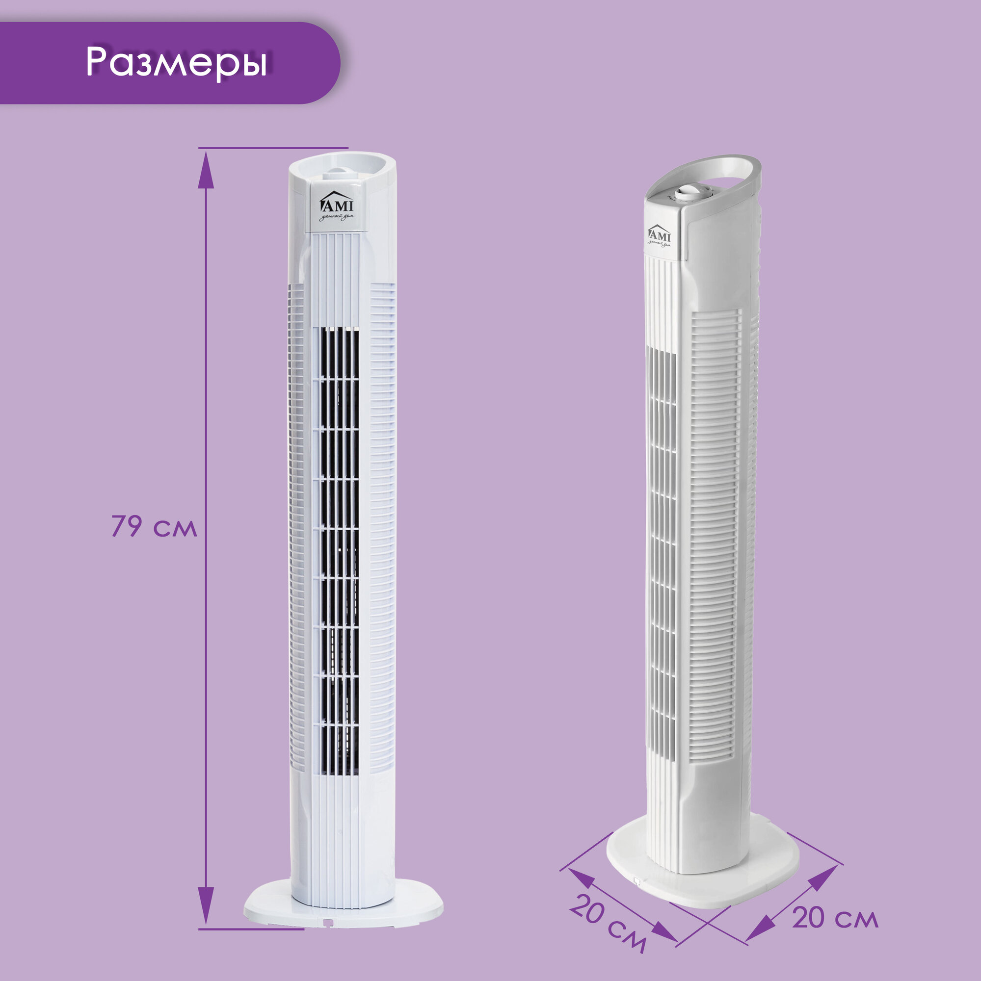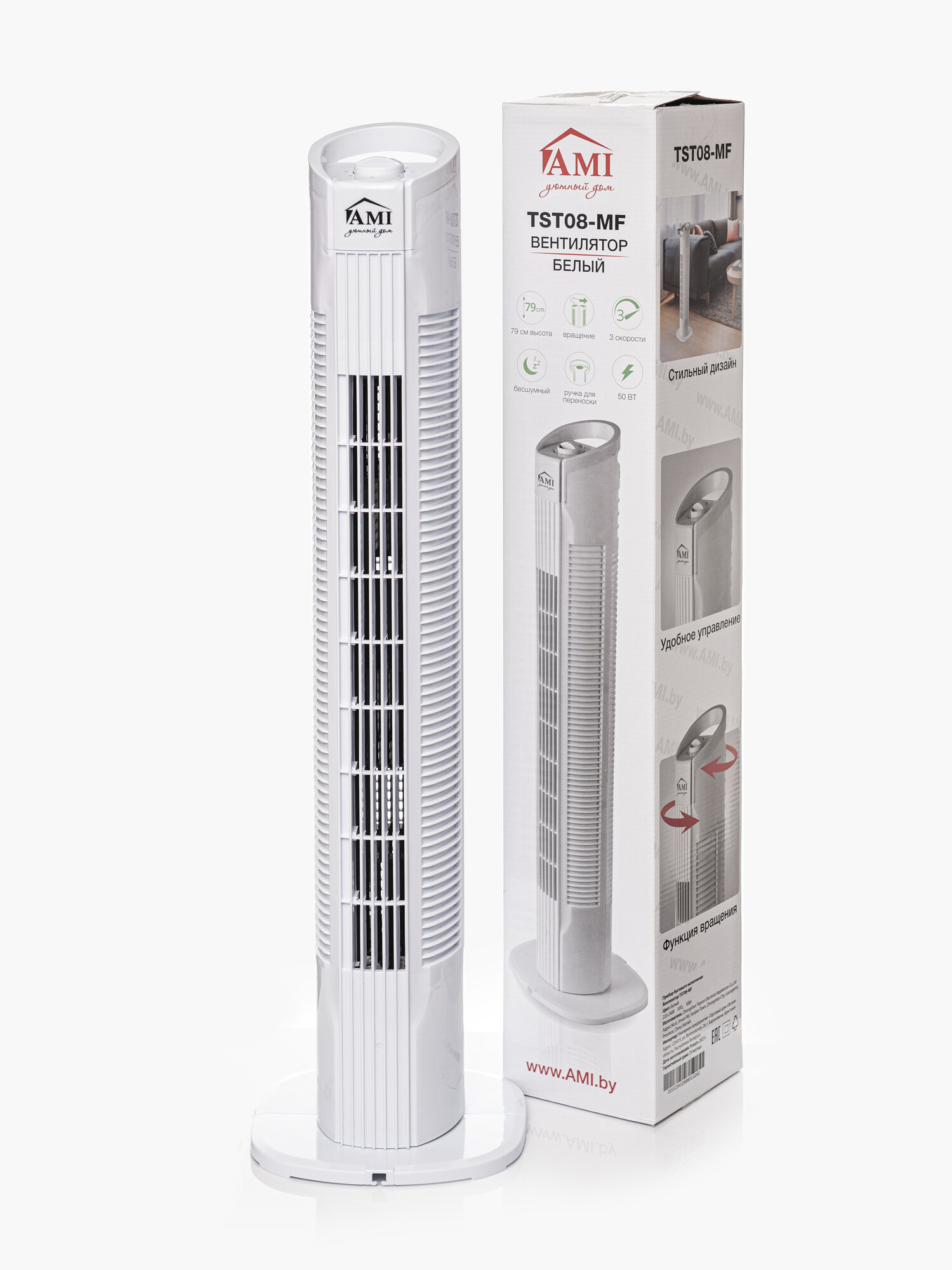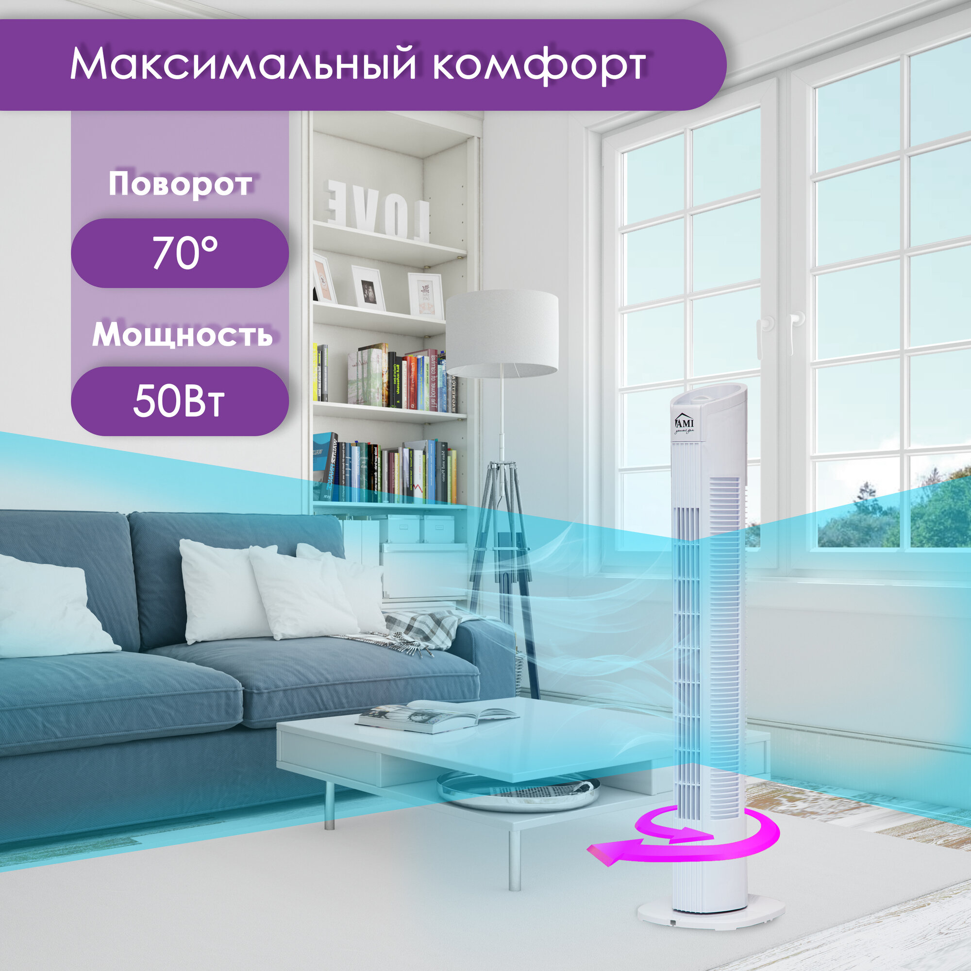 Вентилятор напольный колонный, поворотный вентилятор настольный, белый, Ами Мебель