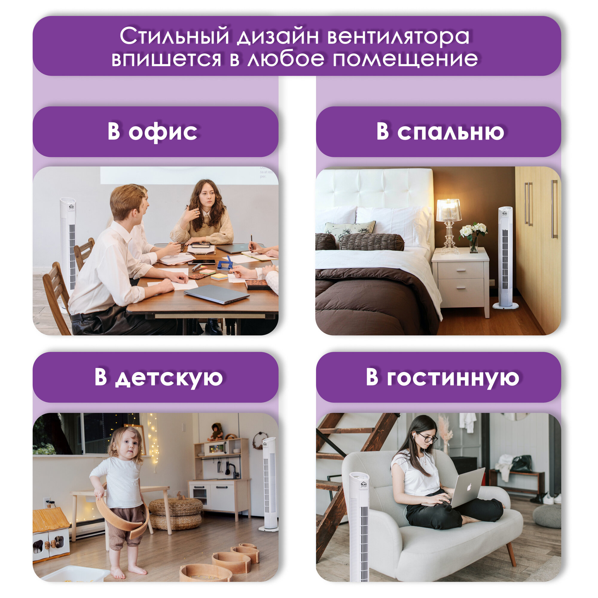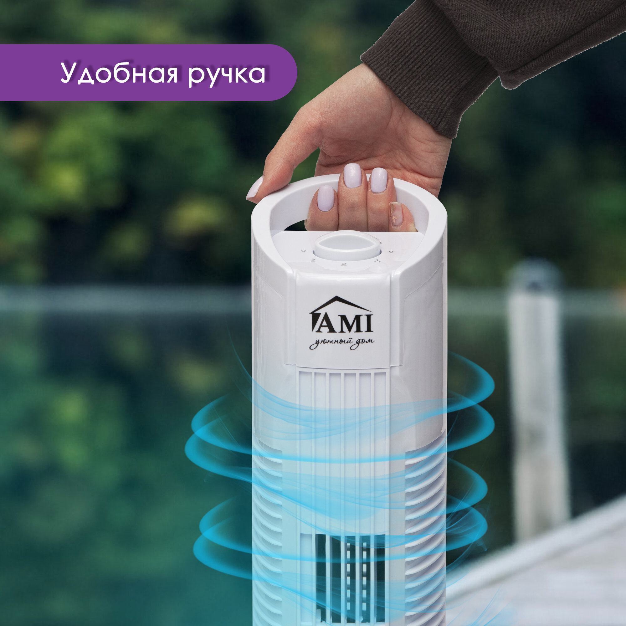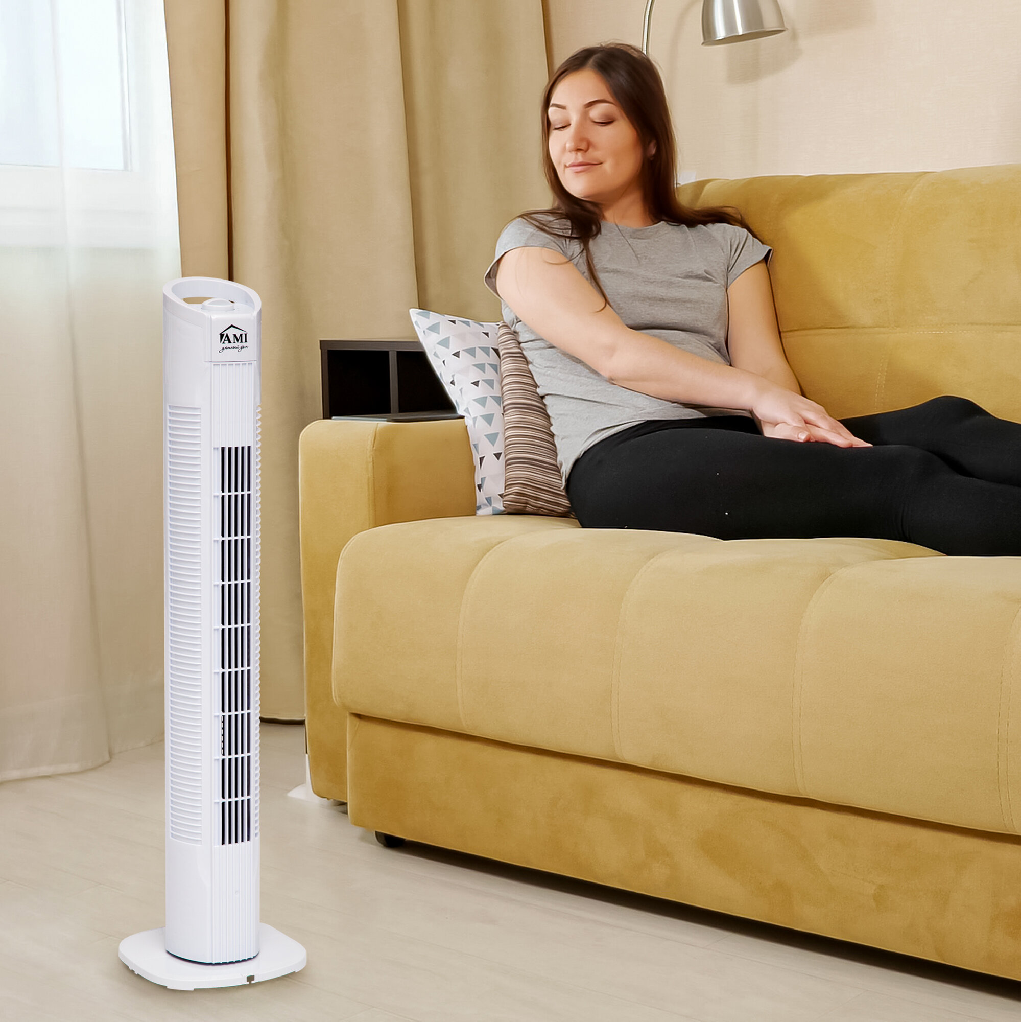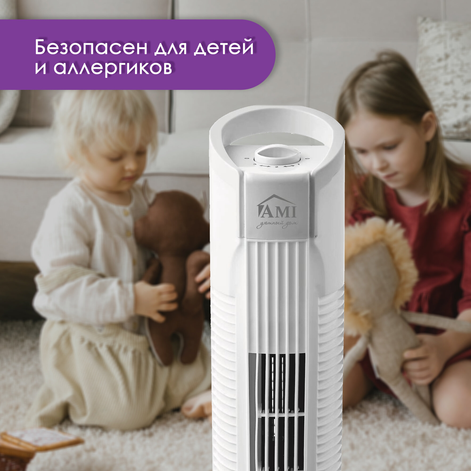 Вентилятор напольный колонный, поворотный вентилятор настольный, белый, Ами Мебель