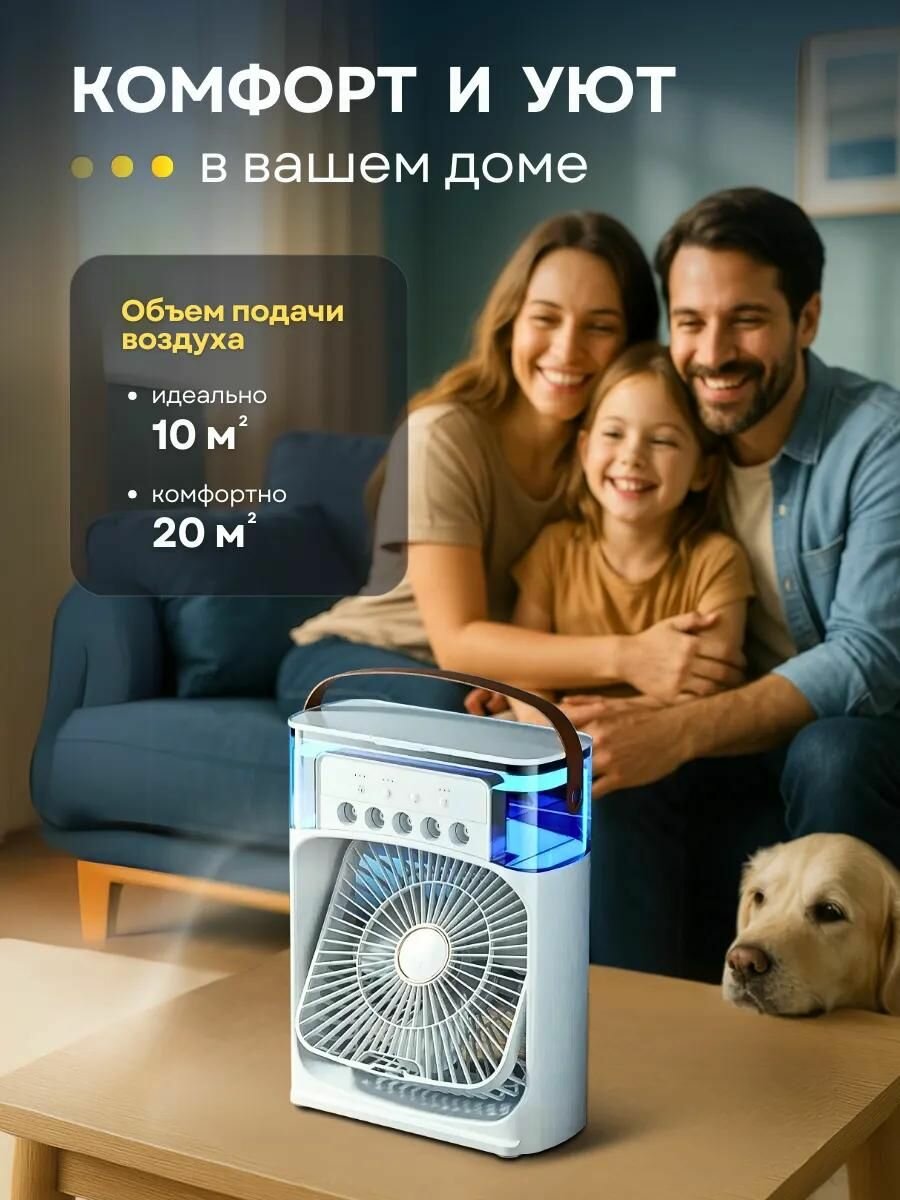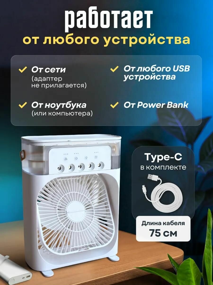 Настольный вентилятор с функцией кондиционера. Увлажнитель портативный и охладитель воздуха белый интересное:
