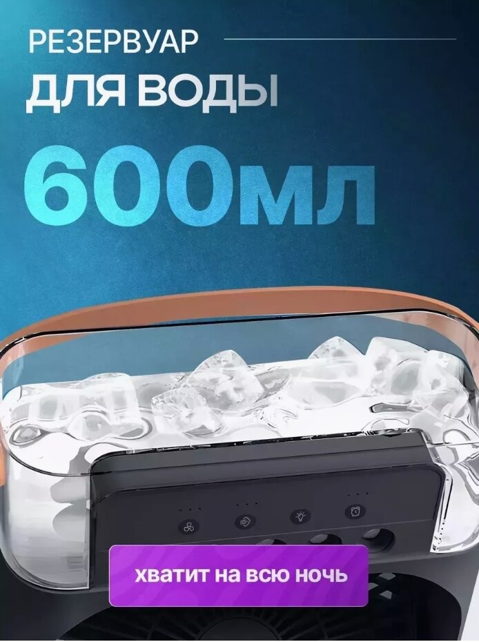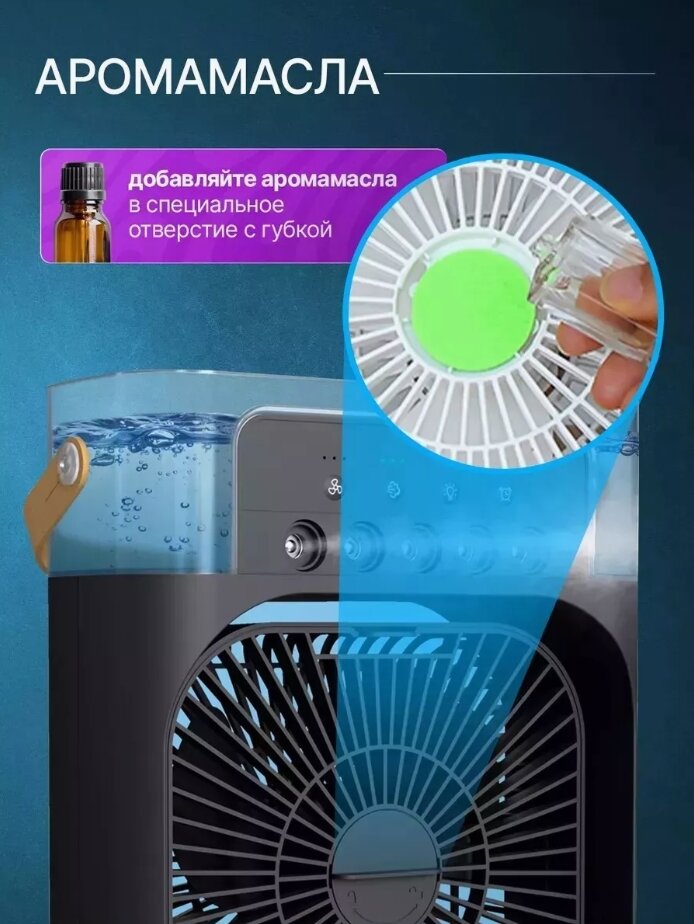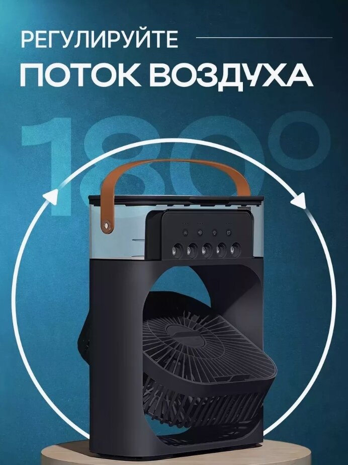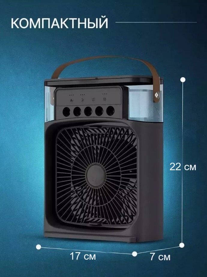 Портативный мини вентилятор с увлажнением и подсветкой, мини-кондиционер чёрный интересное:
