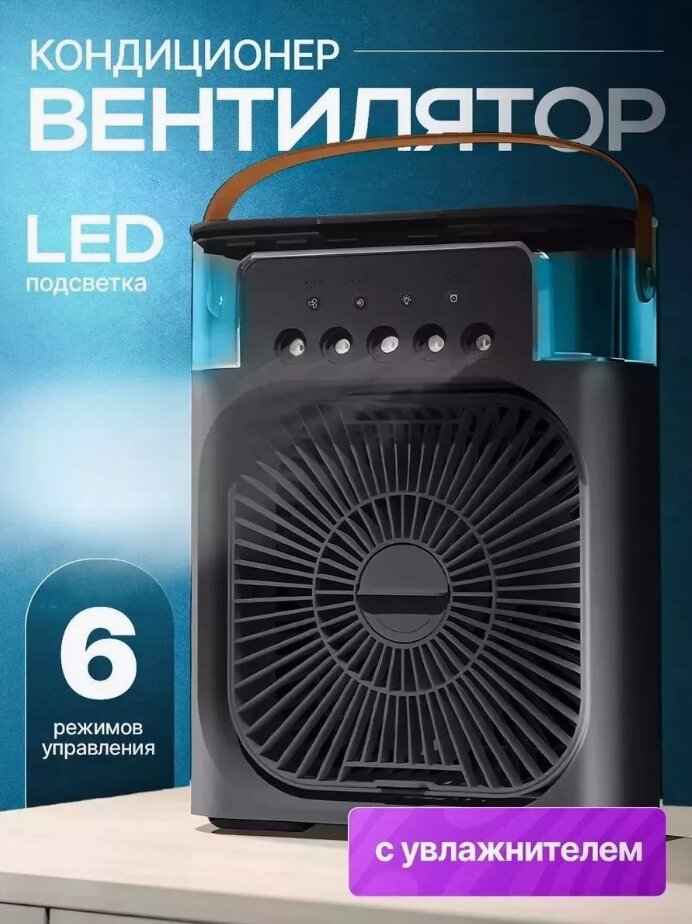 Купить Портативный мини вентилятор с увлажнением и подсветкой, мини-кондиционер чёрный