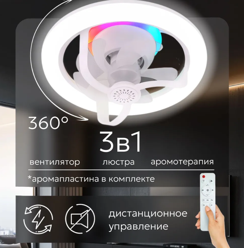 Лампа-вентилятор/Потолочный вентилятор с LED-панелью и пультом/Светодиодный вентилятор с вращающейся соловкой/Белый интересное: