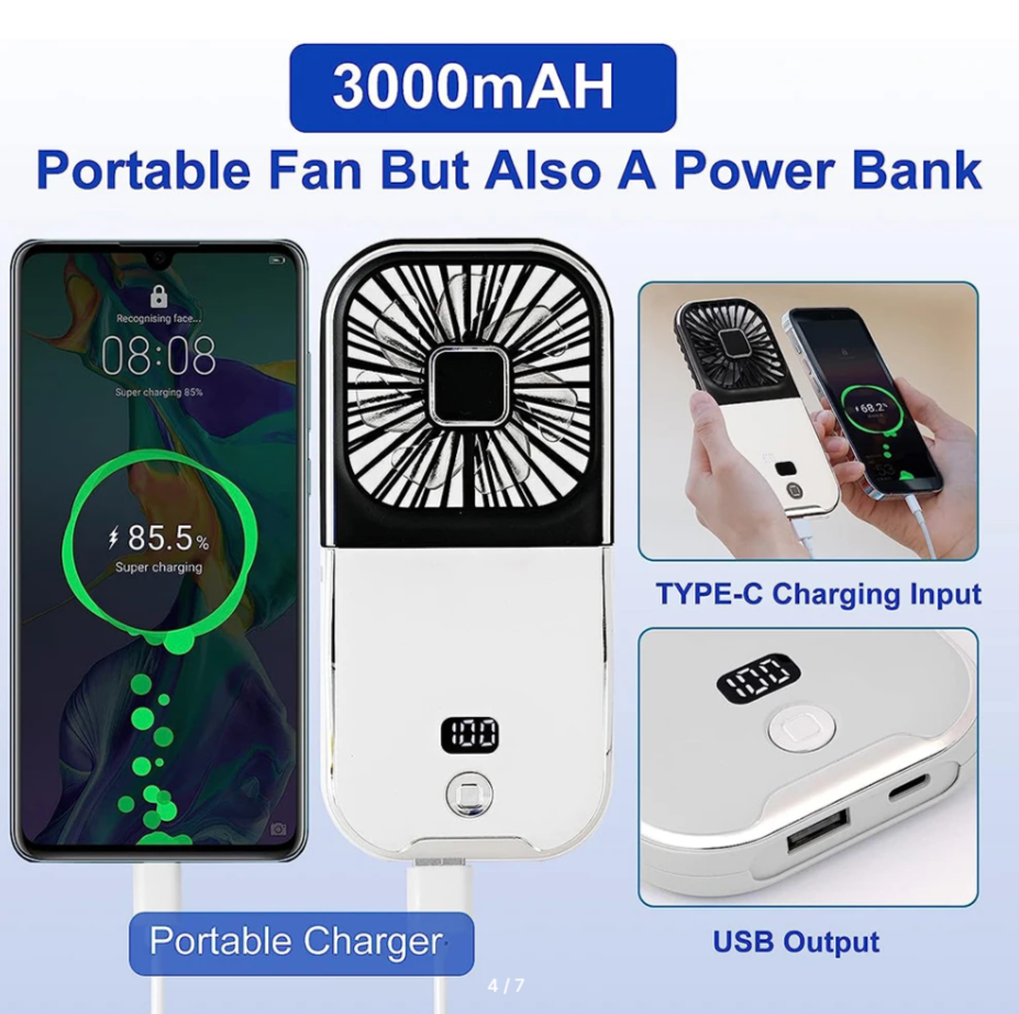 Вентилятор портативный с повер бланком и подставкой для телефона интересное: