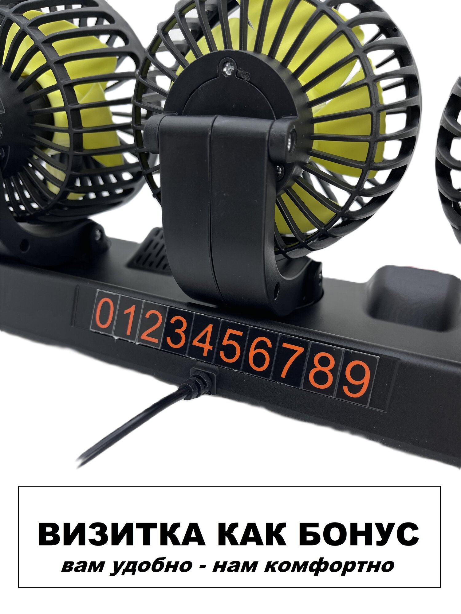 Вентилятор автомобильный USB 12V Тройной с поворотом и визиткой для телефона интересное: