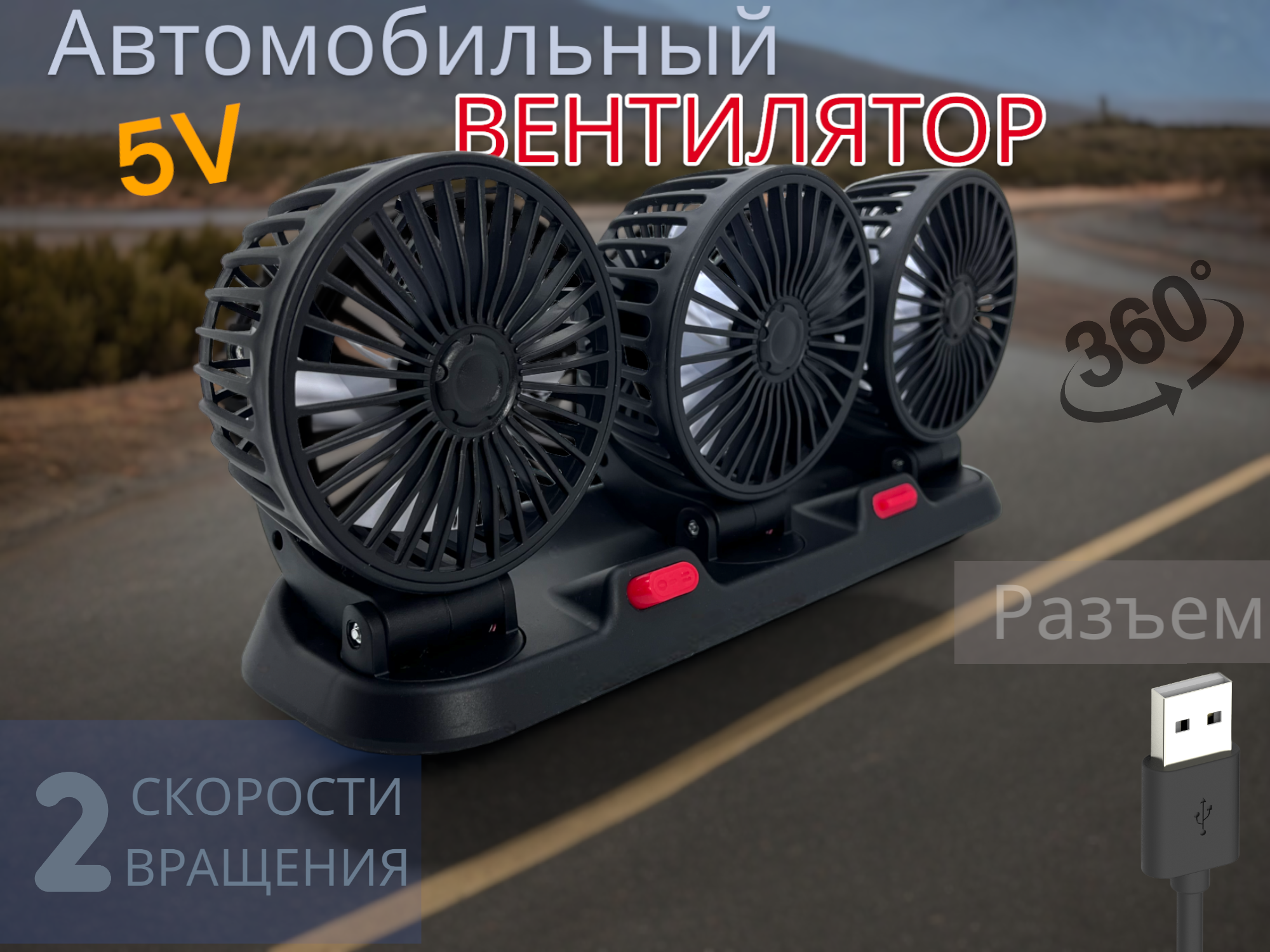 Вентилятор автомобильный в машину USB 5v, 5в тройной с поворотами, с визиткой для номера телефона интересное: