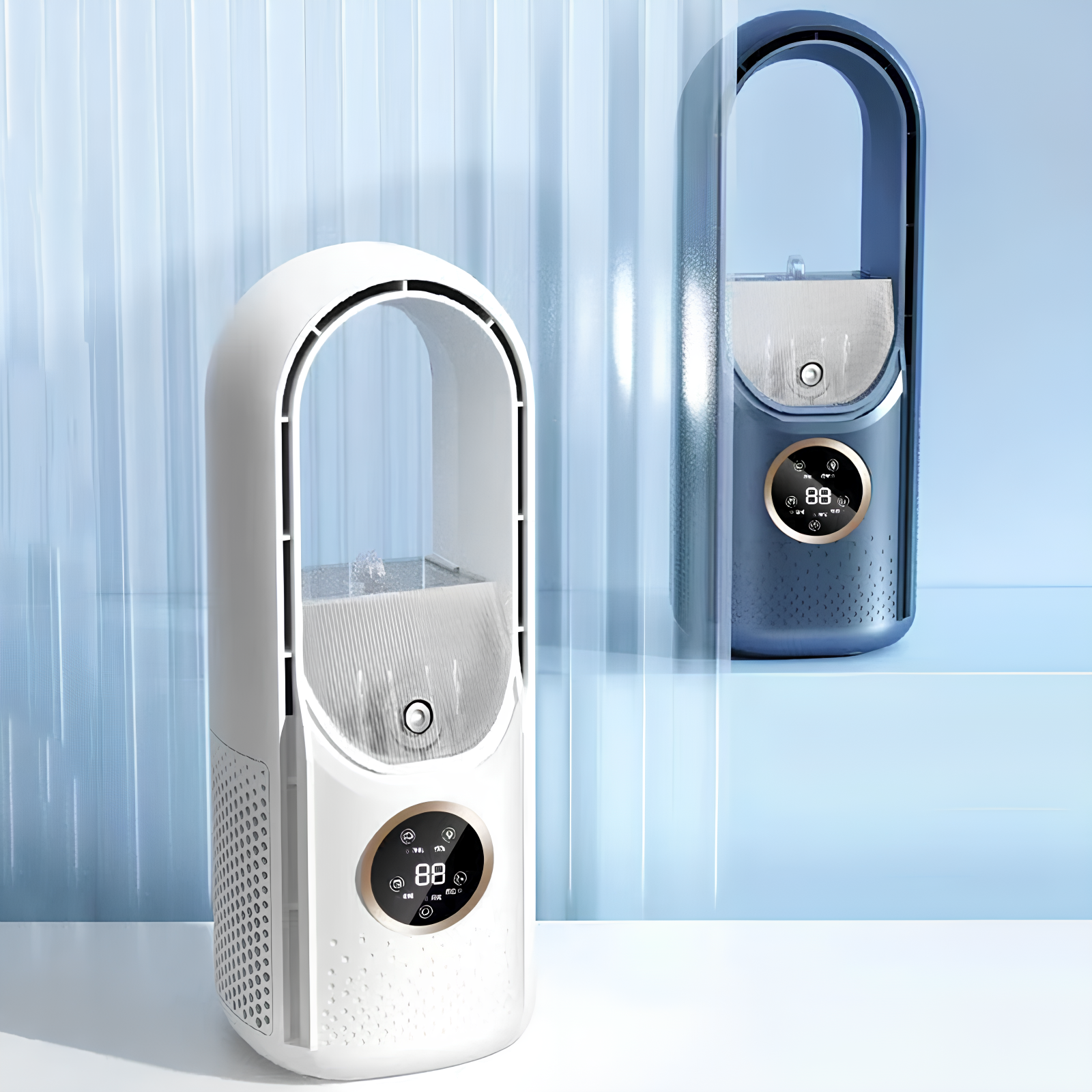 Вентилятор напольный колонный Dason 27, с увлажнителем и охлаждением воздуха 6 скоростей, синий