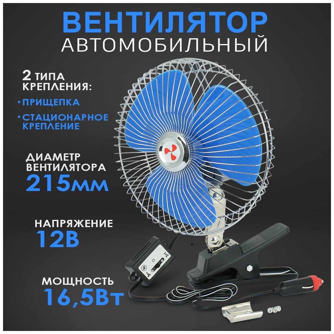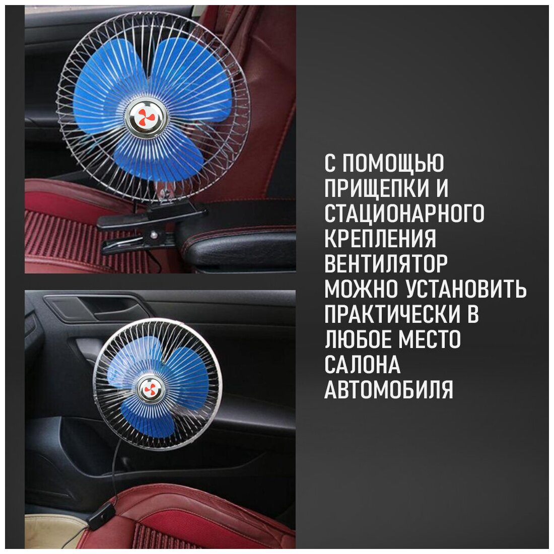 Вентилятор автомобильный металлический с прищепкой интересное: