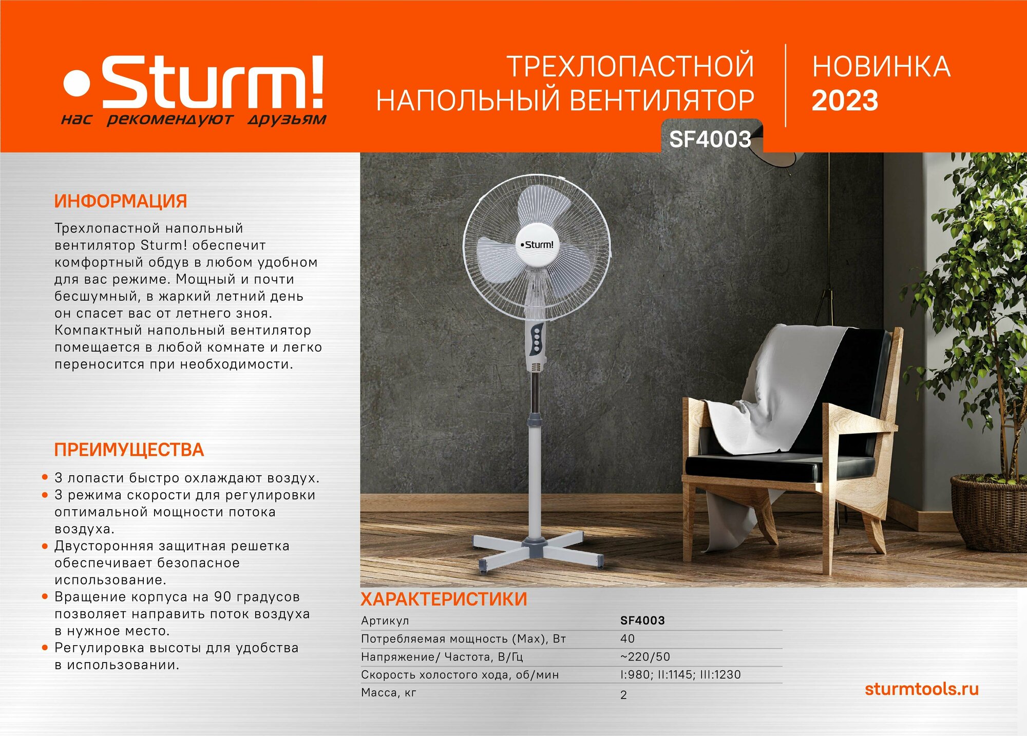 Вентилятор Sturm SF4003 напольный интересное:
