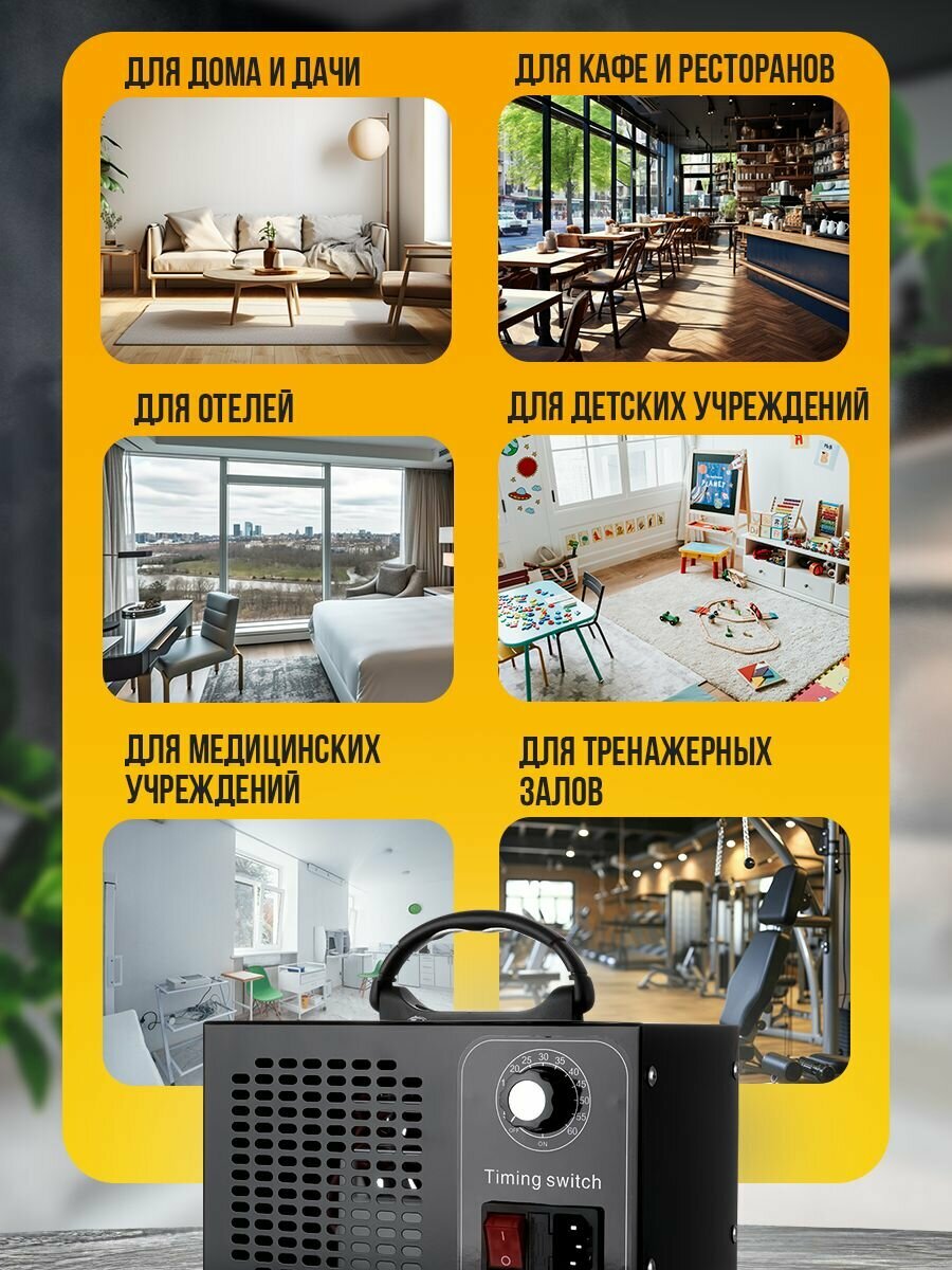 Озонатор 500 мг/час, 220AC/12DC с таймером. Очиститель и очиститель воздуха, воды, продуктов и холодильника, охват до 50 м2. Озонатор для дома.