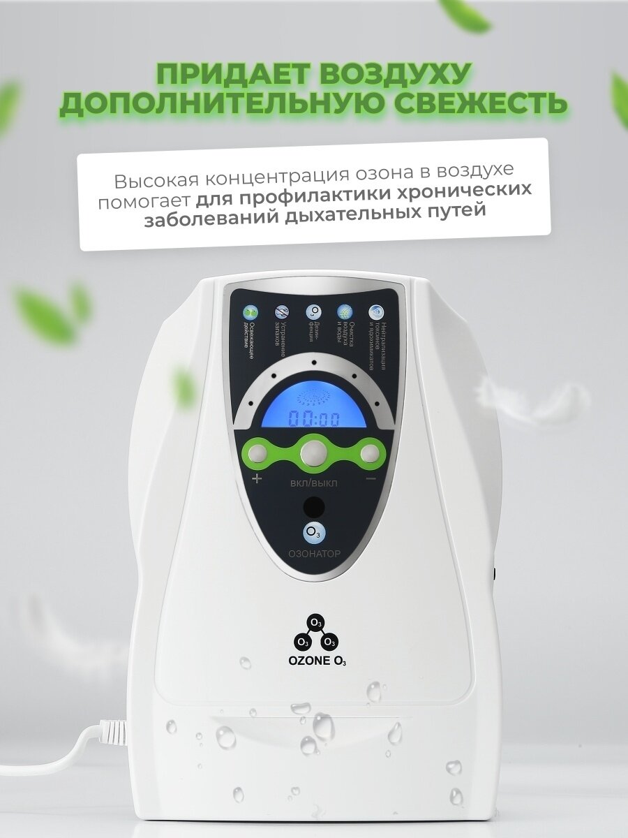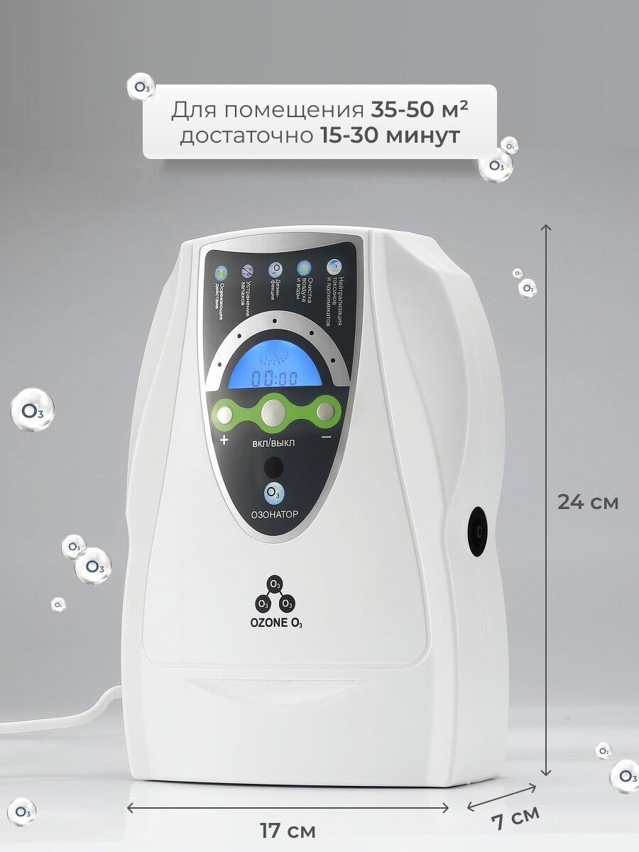 Озонатор 500 мг/час, 220AC/12DC с таймером. Очиститель и очиститель воздуха, воды, продуктов и холодильника, охват до 50 м2. Озонатор для дома.