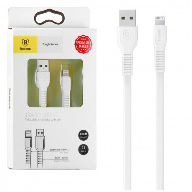 Купить Кабель USB BASEUS Tough, USB - Lightning, 2А, 1 м, белый, CALZY-B02