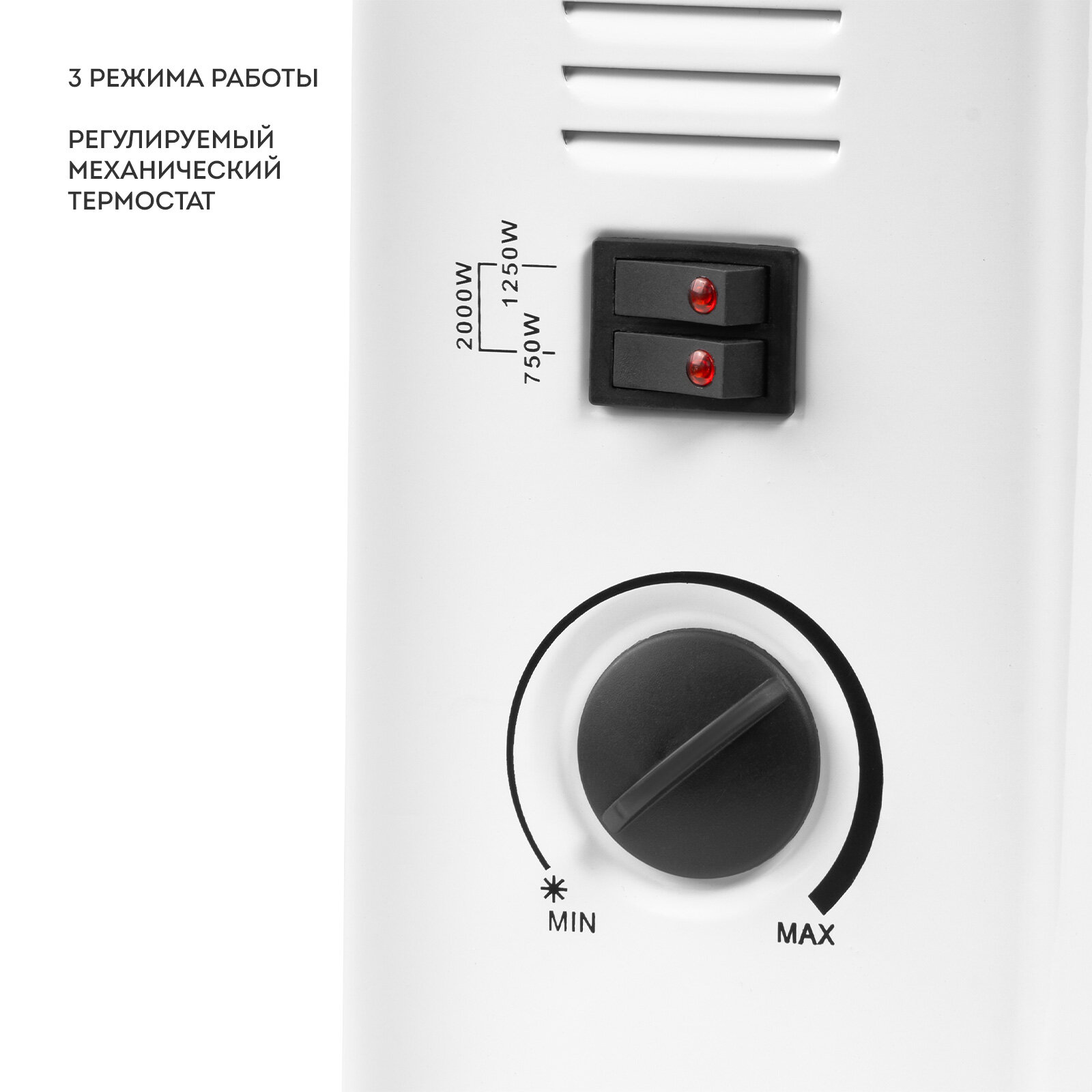 | Дополнительная информация | 3 режима работы: 750 Вт, 1250 Вт, 2000 Вт |