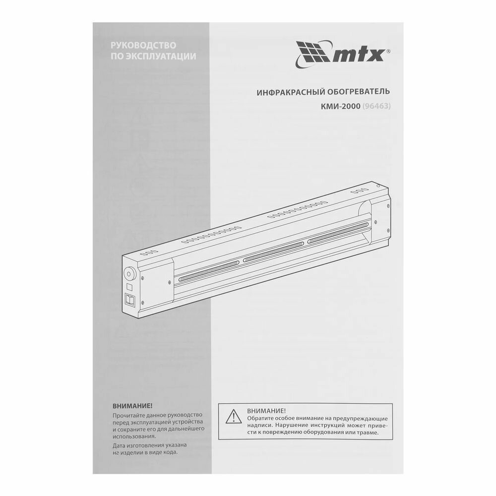 Купить Инфракрасный обогреватель MTX КМИ-2000, 2000Вт, 20м2, кварцевый, черный [96463]