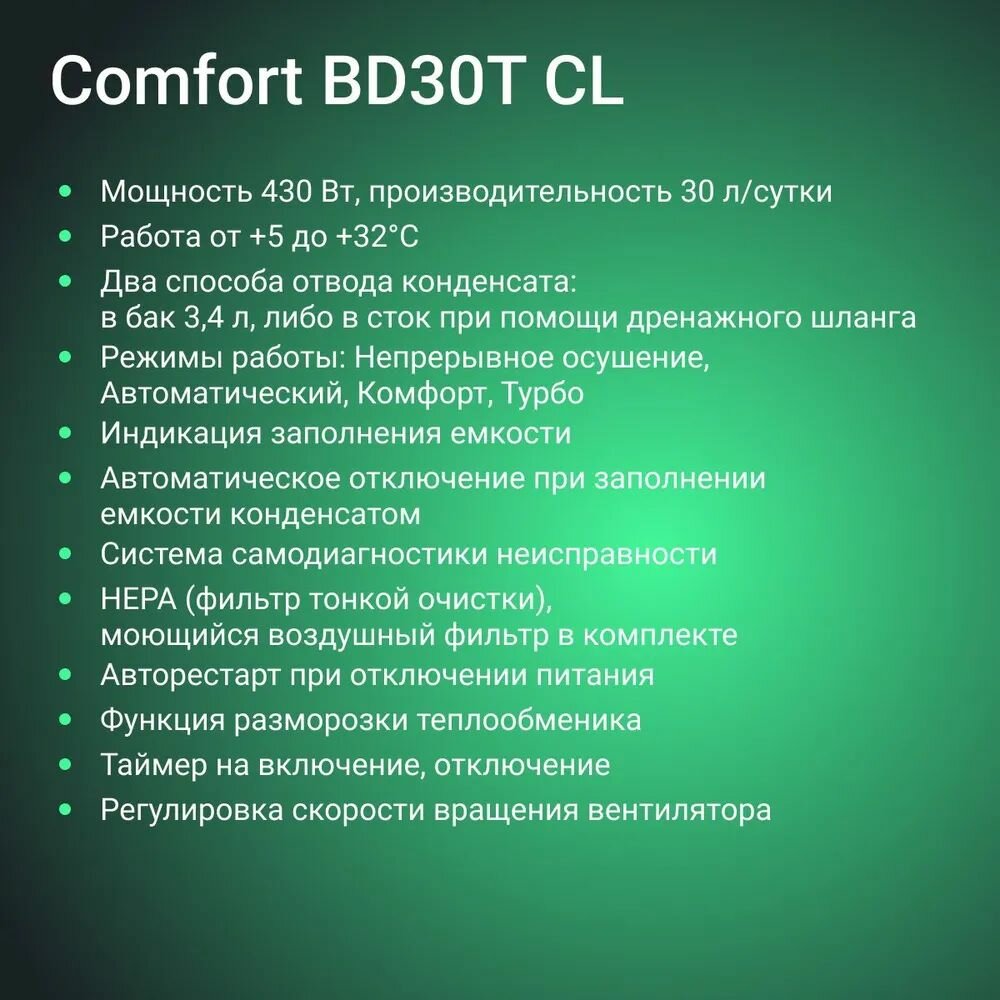 Осушитель воздуха Ballu Comfort BD30T CL/Таймер 24 часа / Эффективен до 35м2 интересное:
