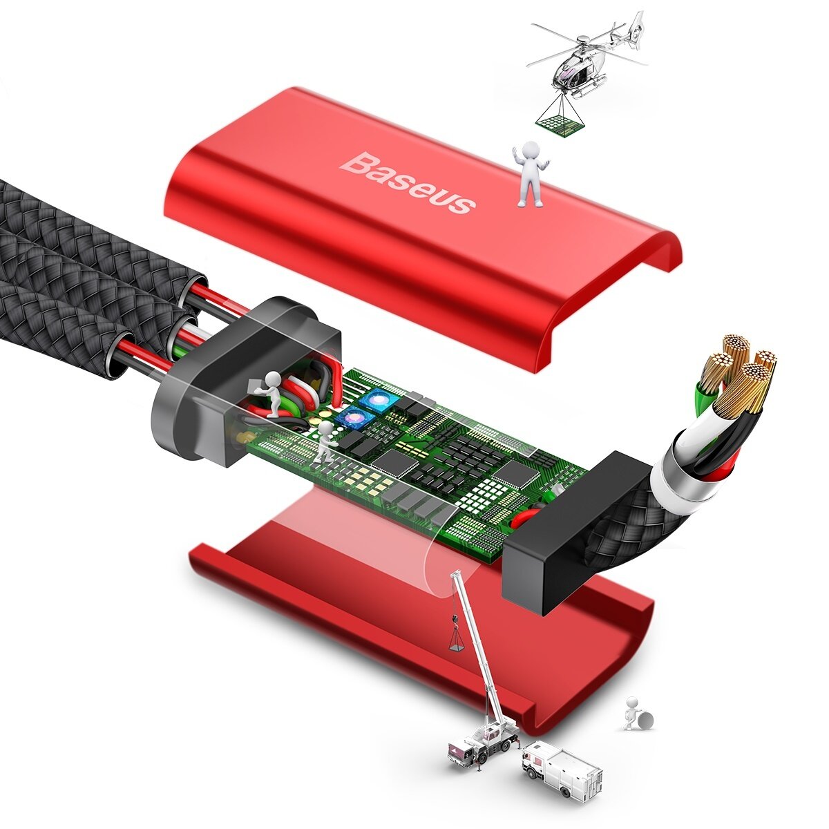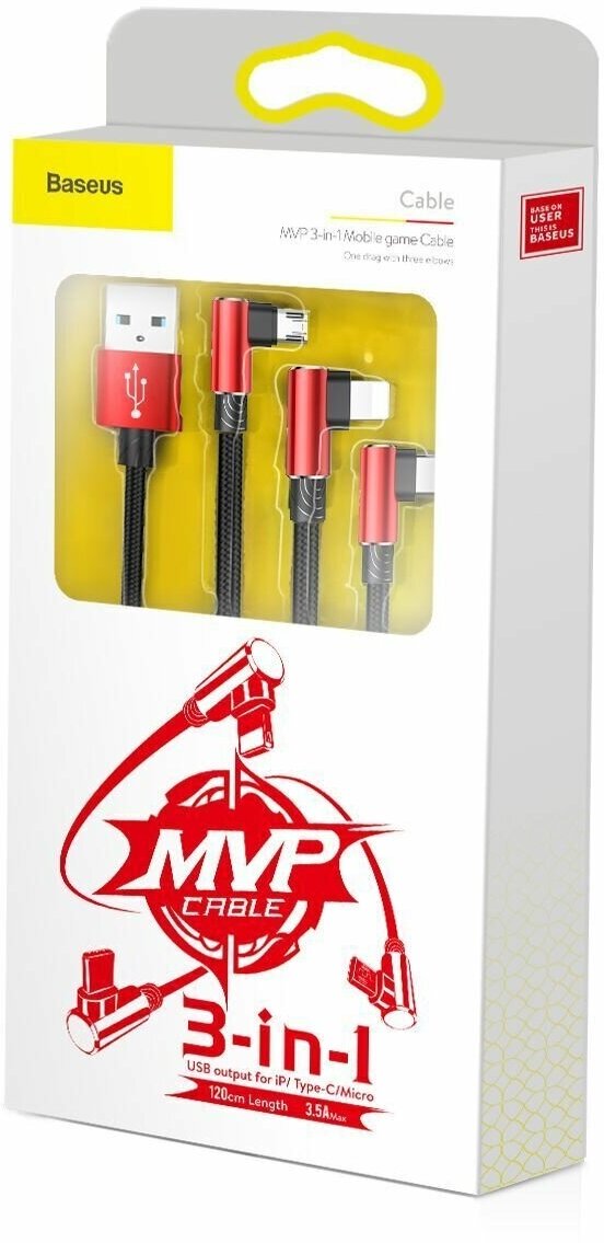 Купить Кабель игровой BASEUS MVP 3-in-1, USB to MicroUSB+Type-C+Lightning, 3.5A, 1.2 м, Черный+Красный, CAMLT-WZ09