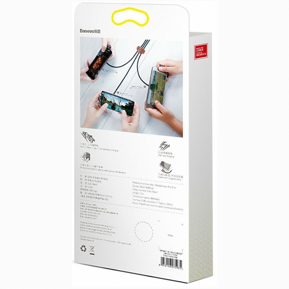 Кабель USB BASEUS MVP 3-in-1, USB - MicroUSB+Type-C+Lightning, 3.5A, 1.2 м, черный, игровой