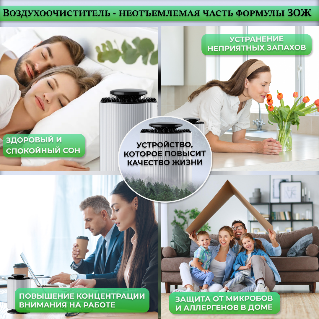 Очиститель воздуха с подсветкой, озонатор с ионизацией для дома, воздухоочиститель для дезинфекции и устранения неприятного запаха интересное: