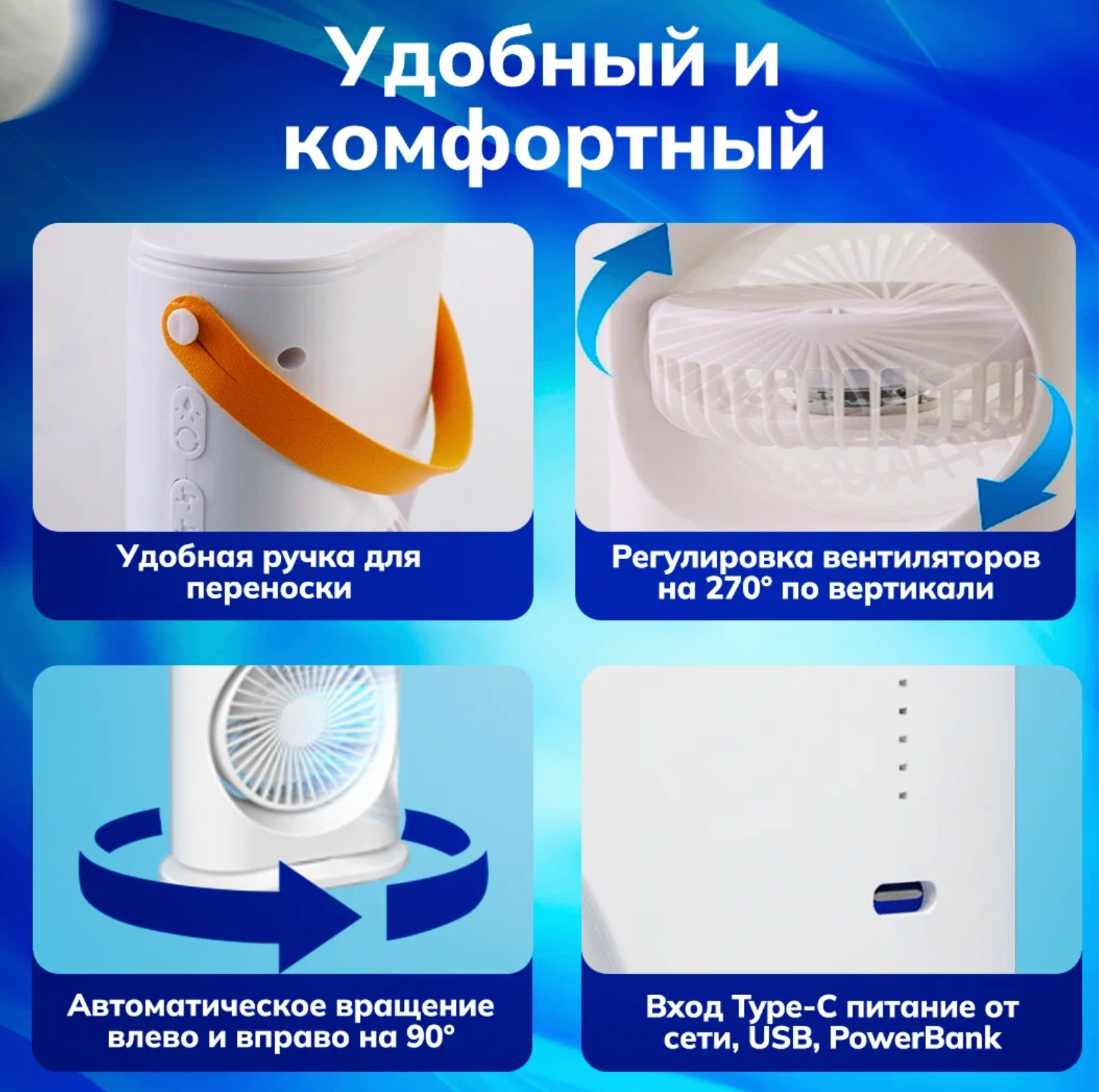 Настольный мини кондиционер 3 в 1 с LED-подсветкой, мини вентилятор, мини увлажнитель, интересное: