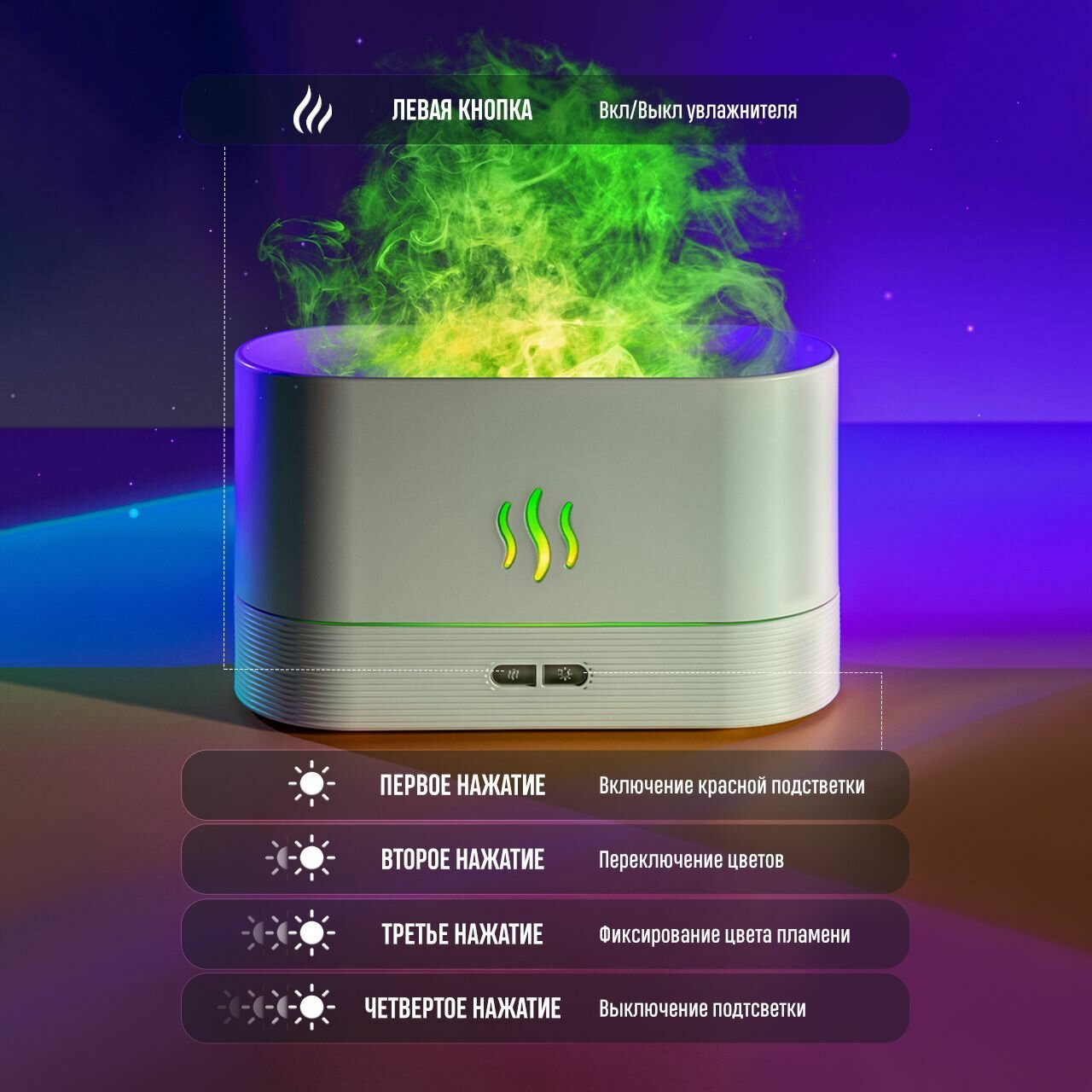 Увлажнитель ультразвуковой с эффектом пламени, аромадиффузор ночник для дома