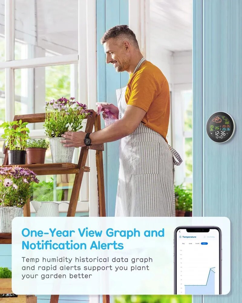 Умная Метеостанция Tuya с Wi-Fi, цифровой измеритель температуры и влажности с цветным экраном, термометр, гигрометр для дома и улицы интересное: