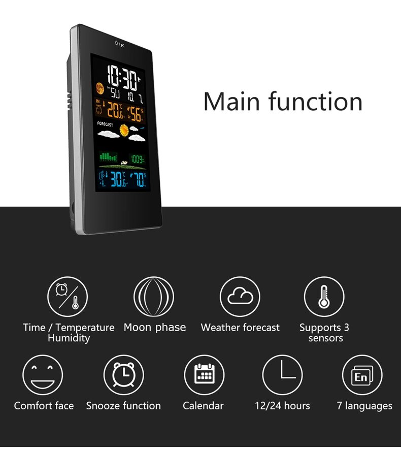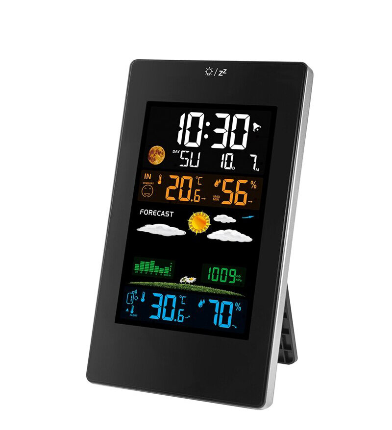 Купить Погодная станция для дома с беспроводным внешним датчиком / Цифровая метеостанция с прогнозом погоды / Black