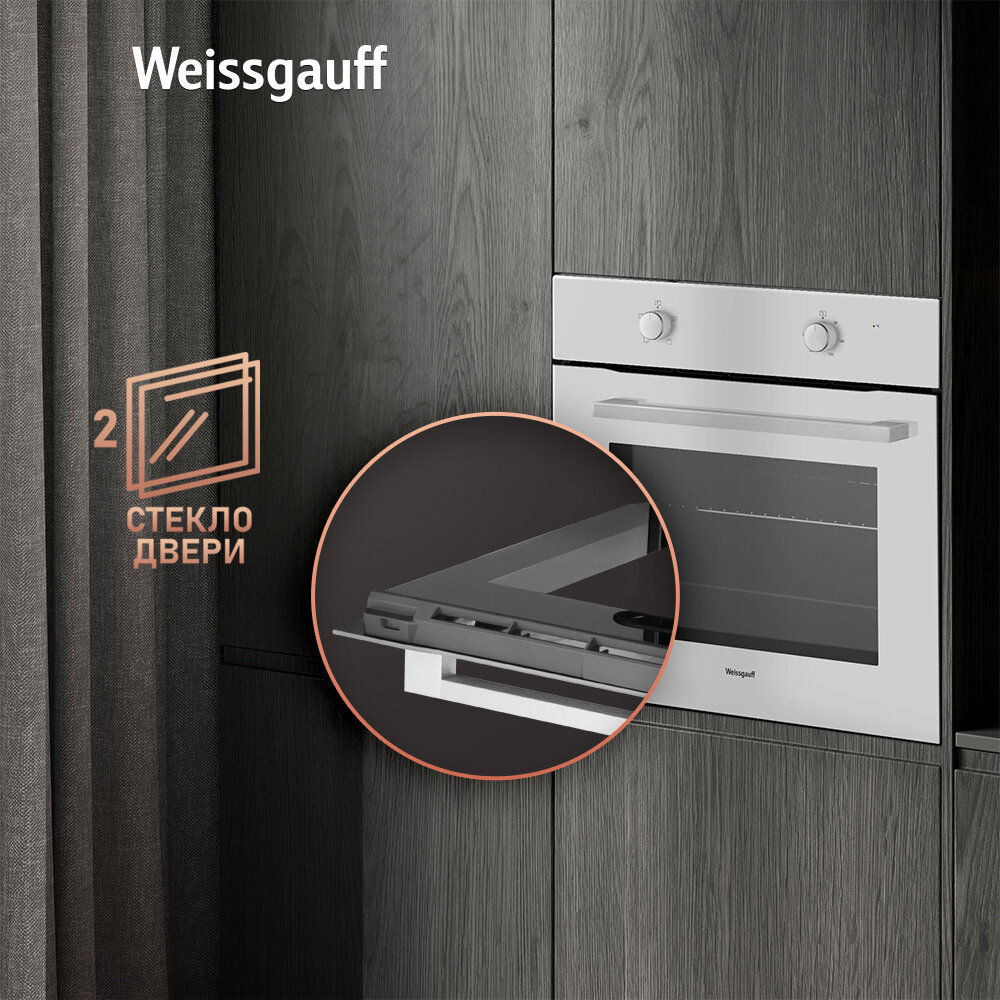 Духовой шкаф Weissgauff EOM 108 PDW 3 года гарантии, 4 функции, большой объем 65 л, двойное остекление дверцы, эмаль легкой очистки интересное: