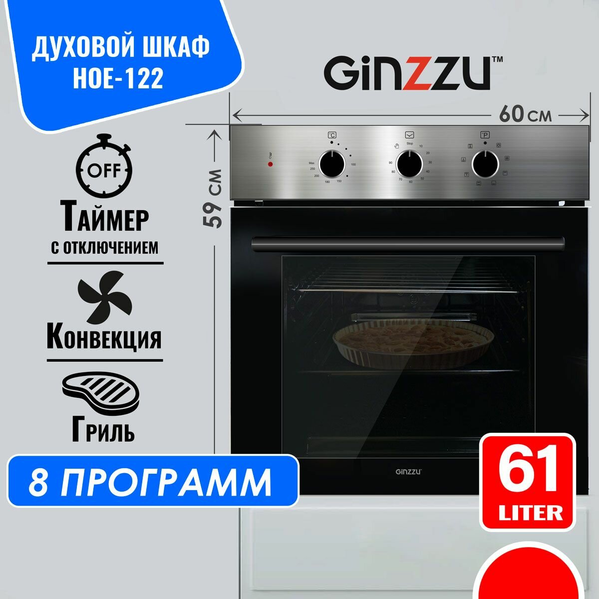 Электрический духовой шкаф встраиваемый Ginzzu HOE-122 стальная панель с конвекцией, 9 программ интересное: