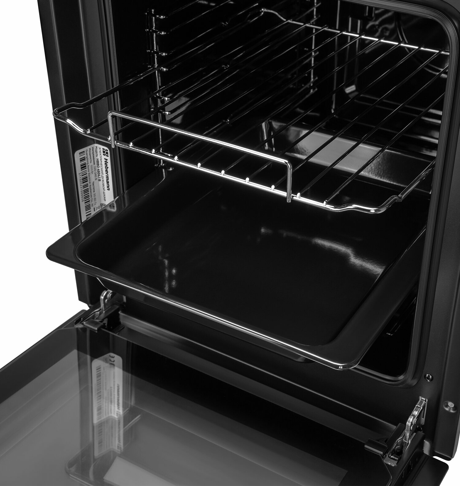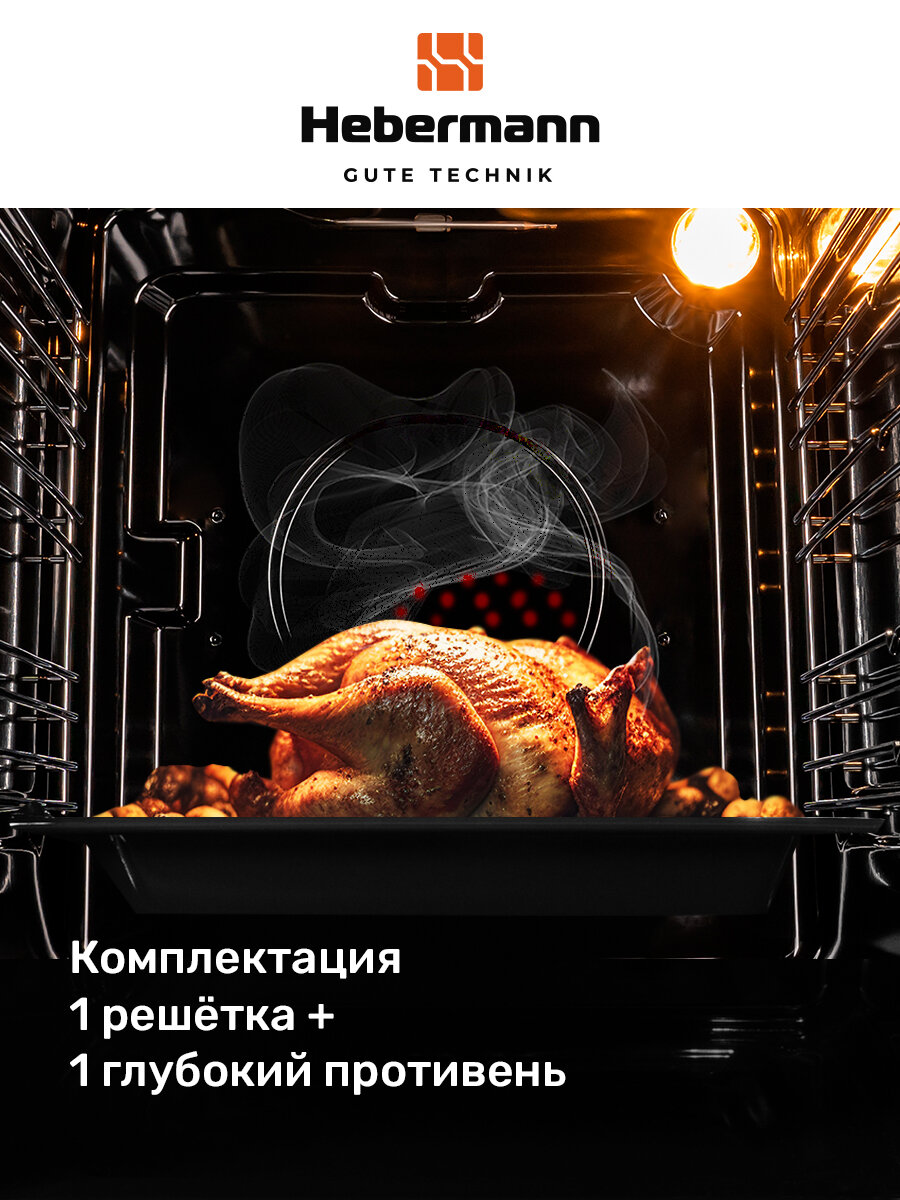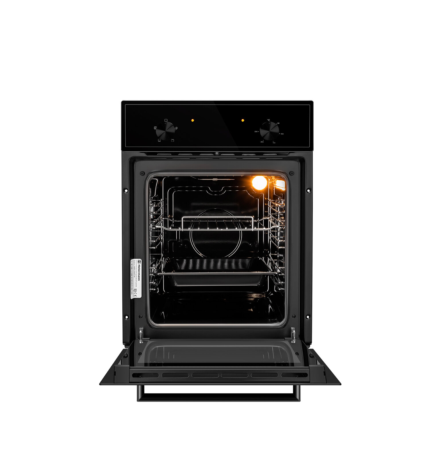 Духовой шкаф встраиваемый HBBO 4504.1 B, черный, верхний и нижний нагрев, 1 решетка и 1 глубокий противень, Объем духовки 58 л., двойное стекло у дверцы, 4 режима работы, размер шкафа 595х450х580 мм, отделка фасада-стекло. интересное: