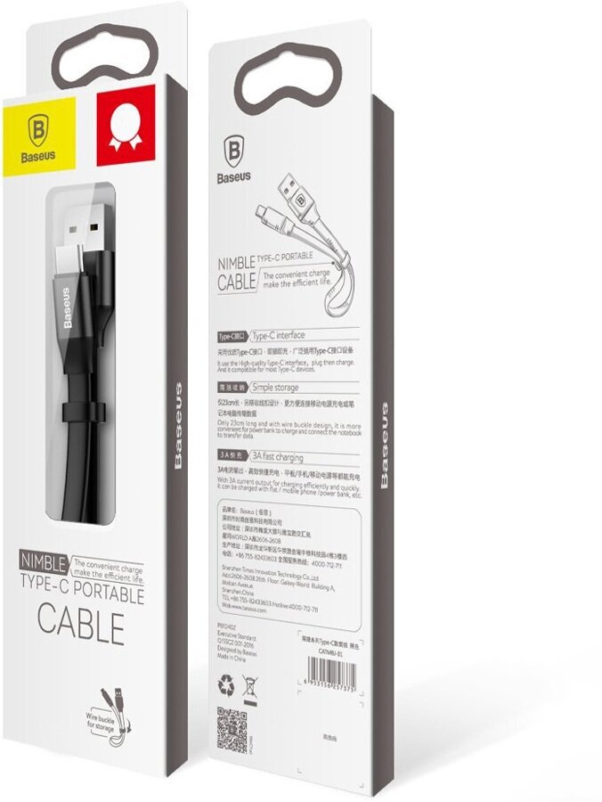 Usb Кабель-зарядка TYPE-C Baseus Nimble 23см (CATMBJ-01) черный