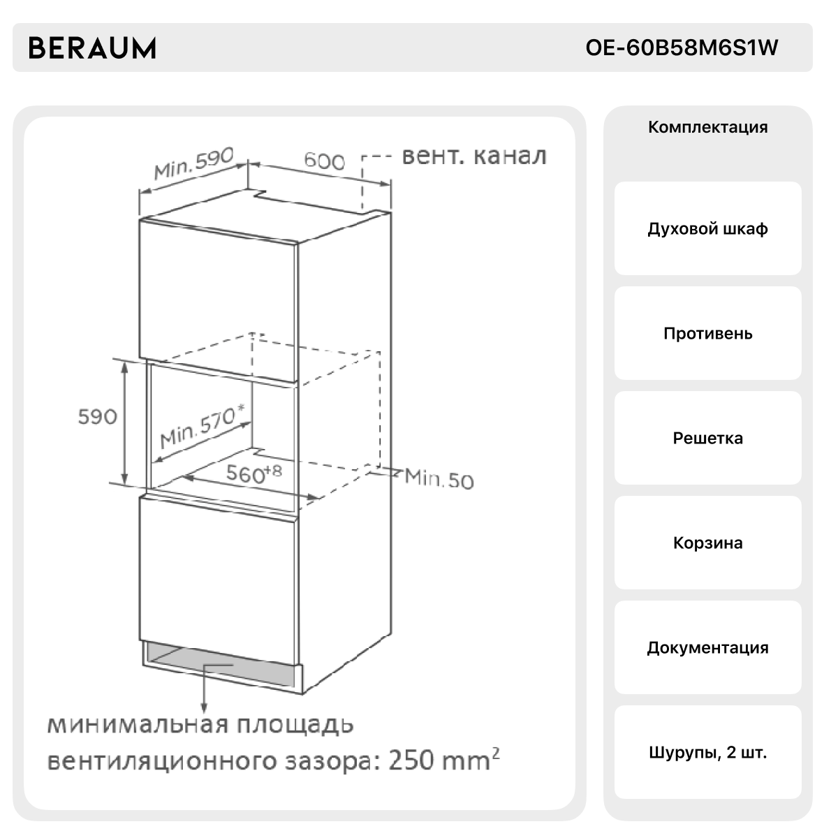 Электрический духовой шкаф Beraum OE-60B58M6S1W интересное:
