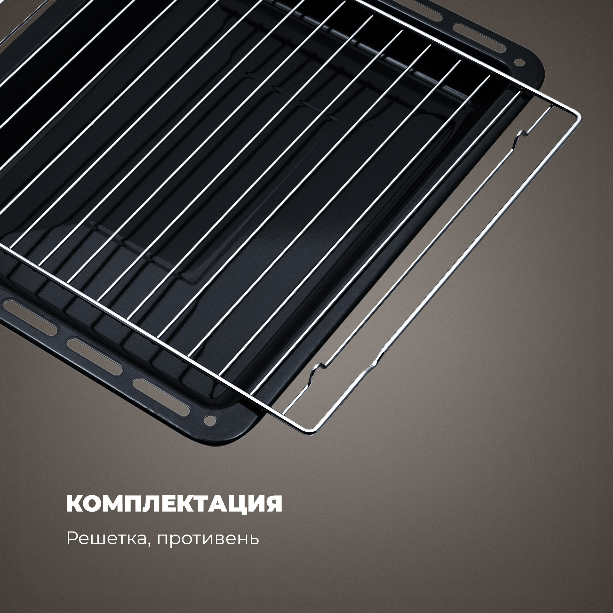 | Подробная комплектация | глубокий противень с антипригарным покрытием, хромированная решётка |
