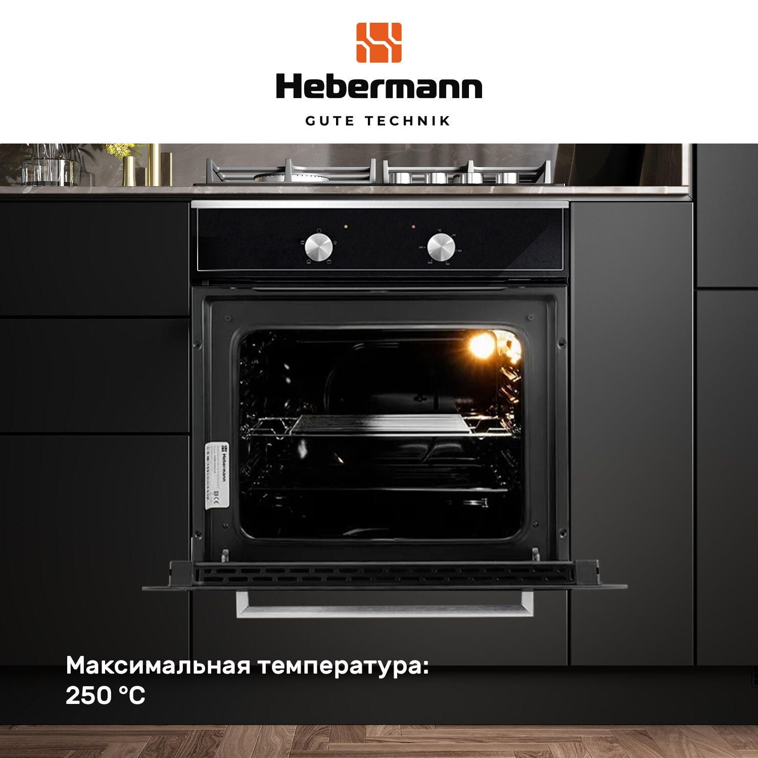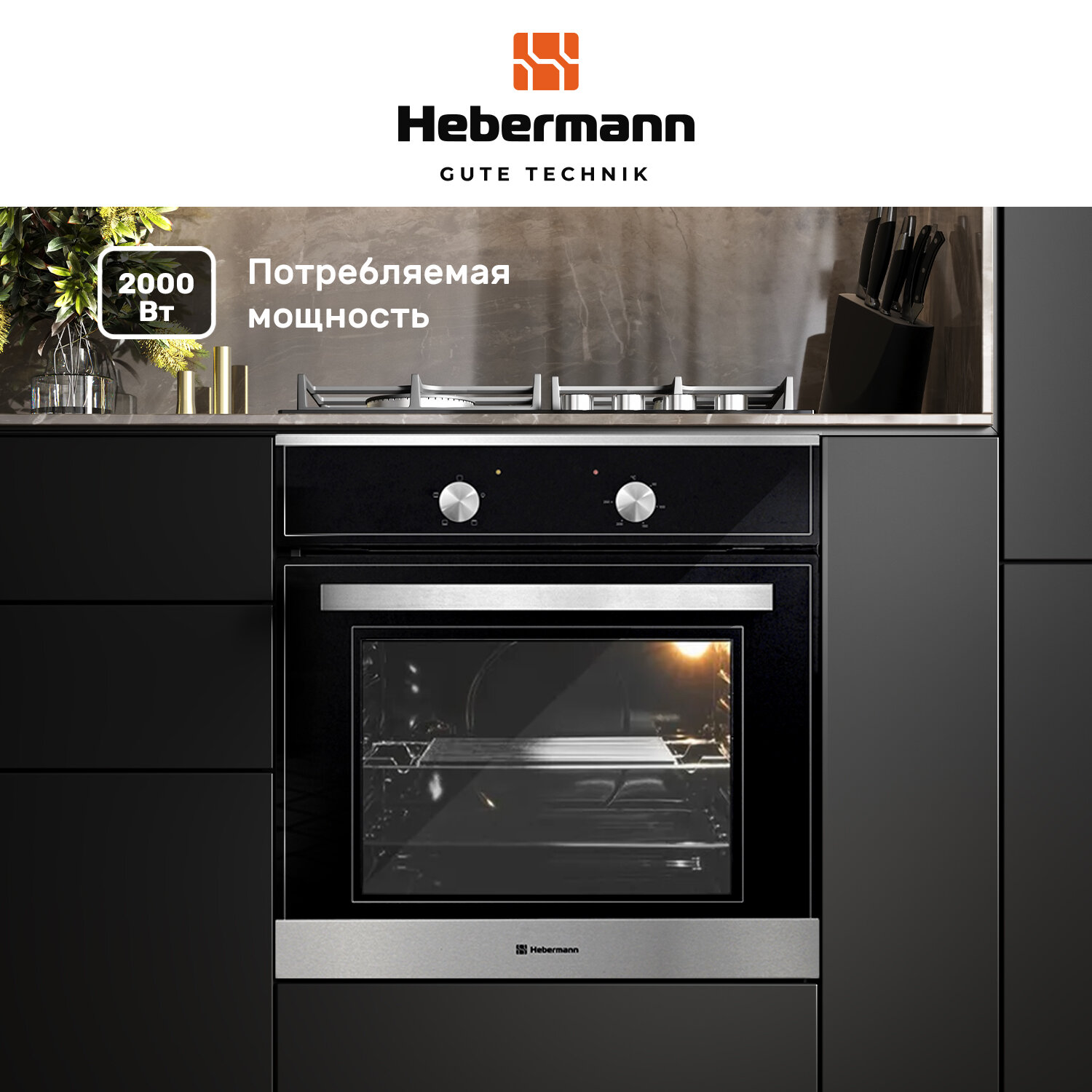 Духовой шкаф встраиваемый HBBO 6004.1 X, черный, верхний и нижний нагрев, 1 решетка и 1 противень, двойное стекло у дверцы, 4 режима работы, объем духовки 62 л, размеры шкафа(В*Ш*Г)595*595*530 мм, отделка фасада-стекло+нержавеющая сталь. интересное: