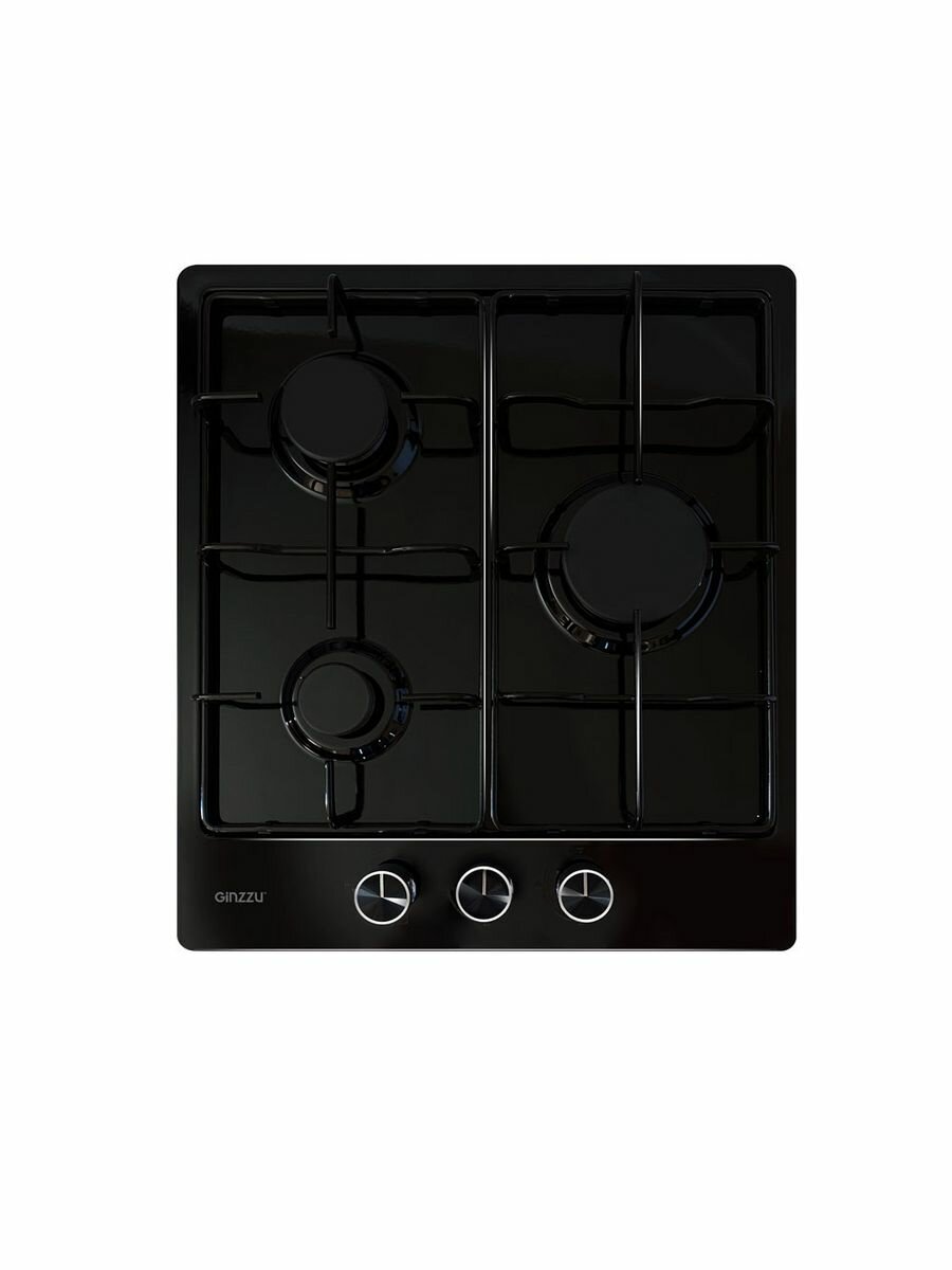 Варочная панель газовая Ginzzu HCG-301, черная эмаль, 3 конф, эл. поджиг, газконтроль