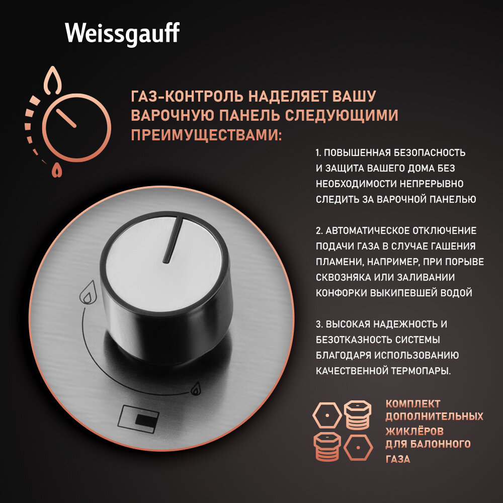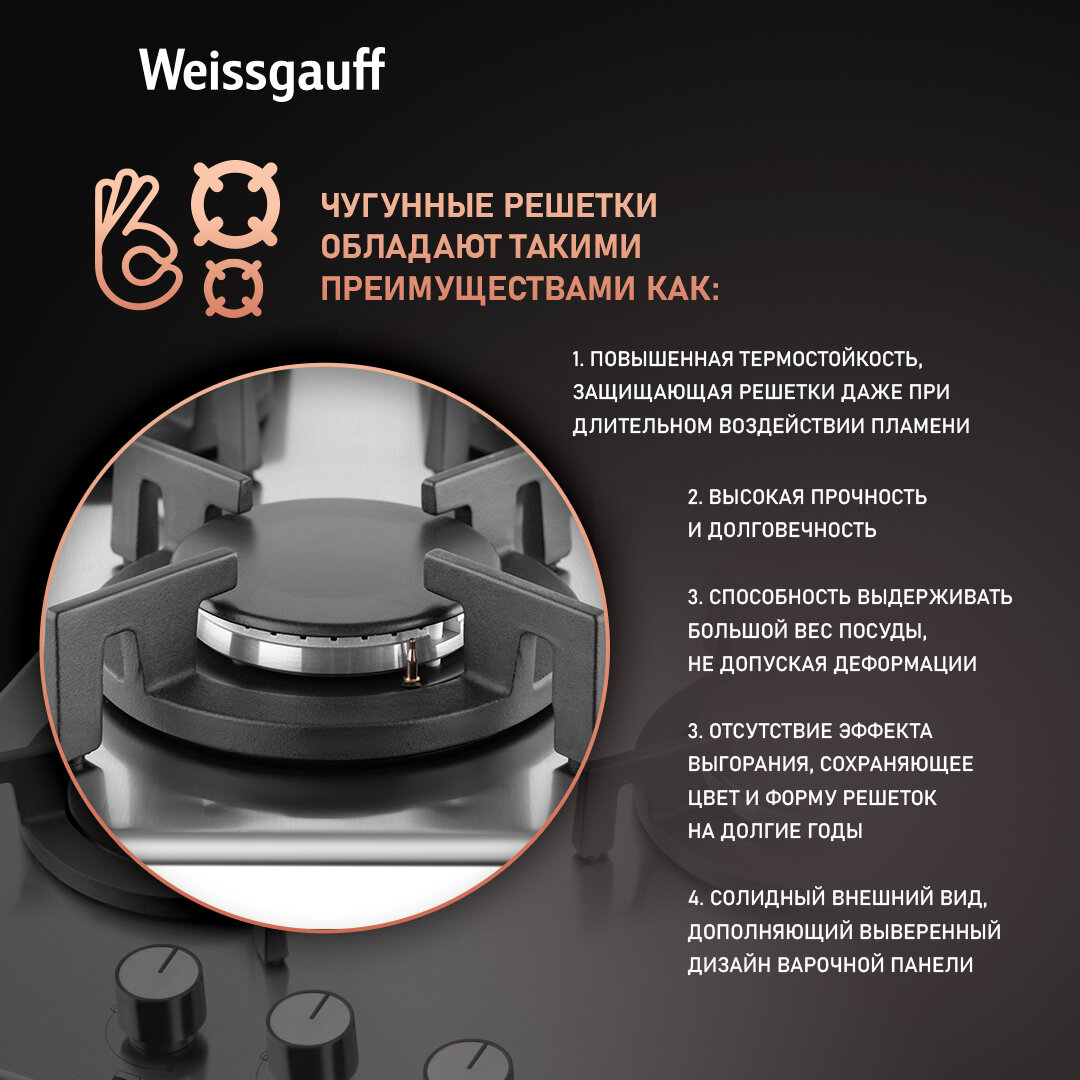Газовая панель Weissgauff HGG 430 XRV 3 года гарантии, автоматический электроподжиг, Рукоятки Hi-Tech, газ-контроль интересное: