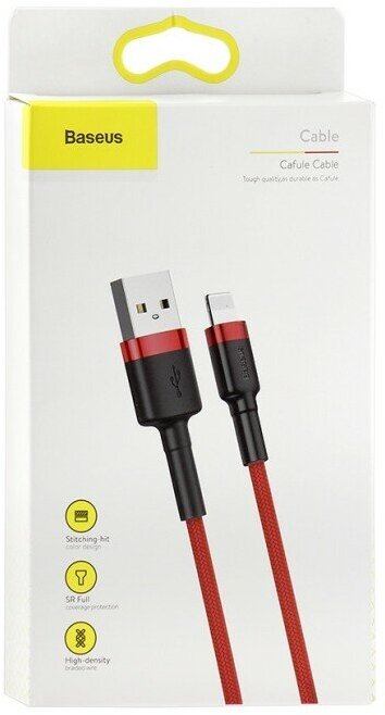 Кабель Baseus Cafule USB - Lightning (CALKLF), 1 м, черный/красный