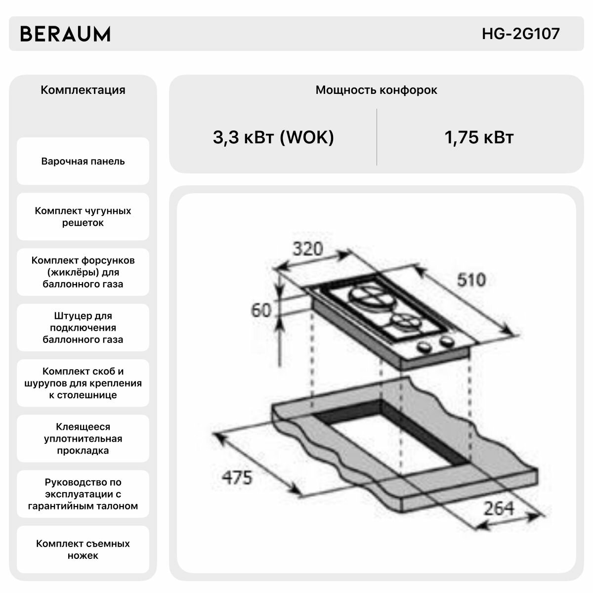 Газовая варочная панель Beraum HG-2G107W с газ-контролем