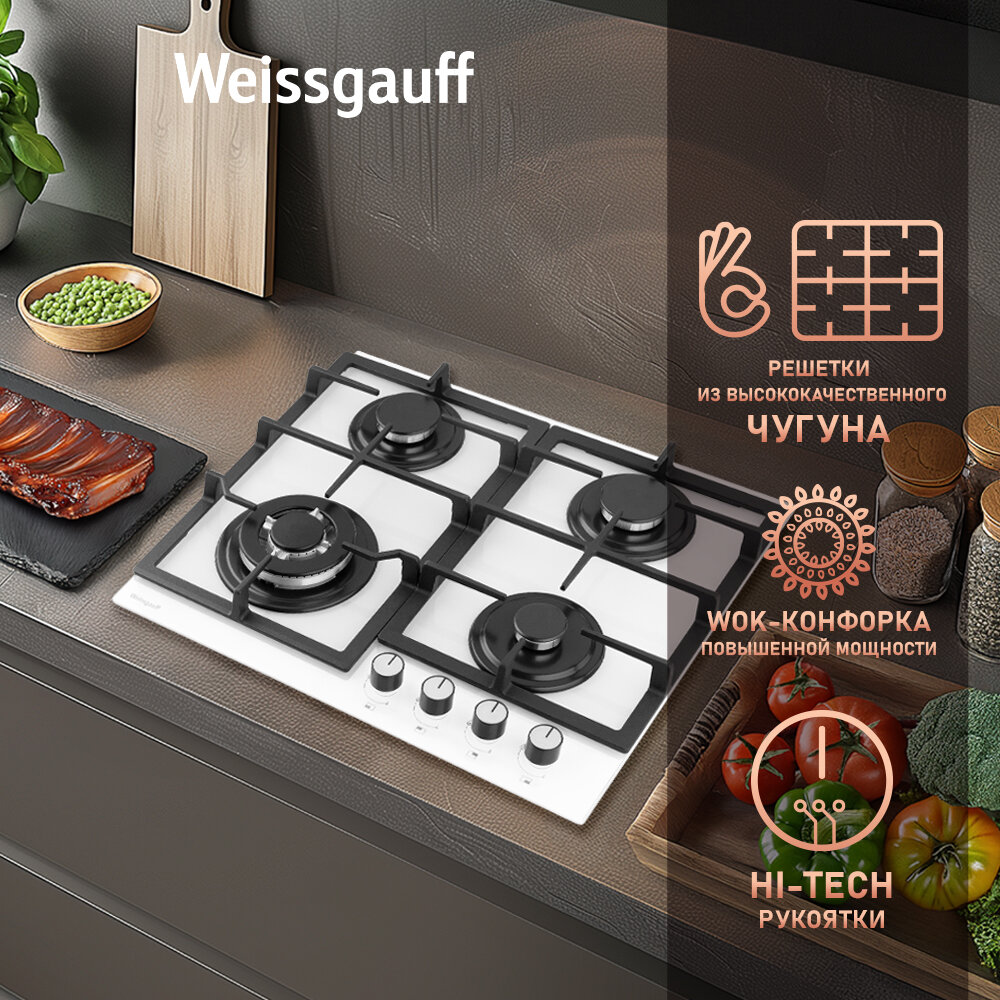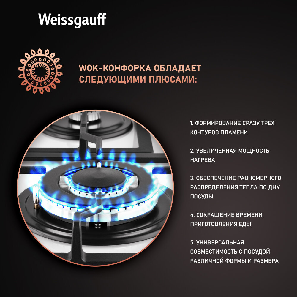 Варочная панель Weissgauff HGG 641 WGV WOK-конфорка, 3 года гарантии, автоматический электроподжиг, Рукоятки Hi-Tech, газ-контроль интересное: