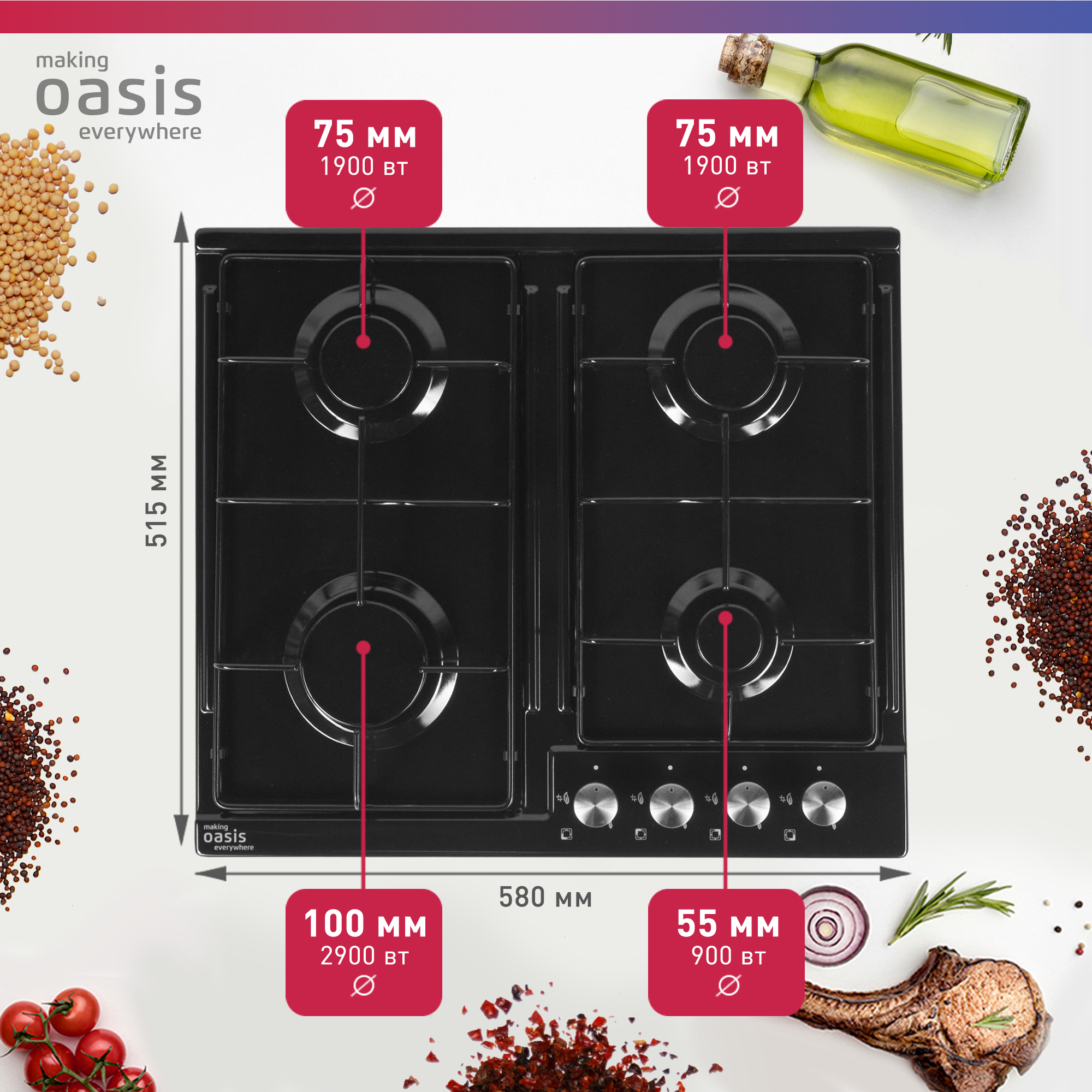 | Общее количество конфорок | 4 |