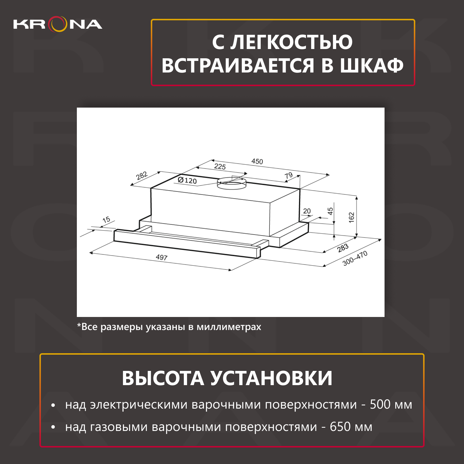Вытяжка встраиваемая Krona Kamilla T 500 X интересное: