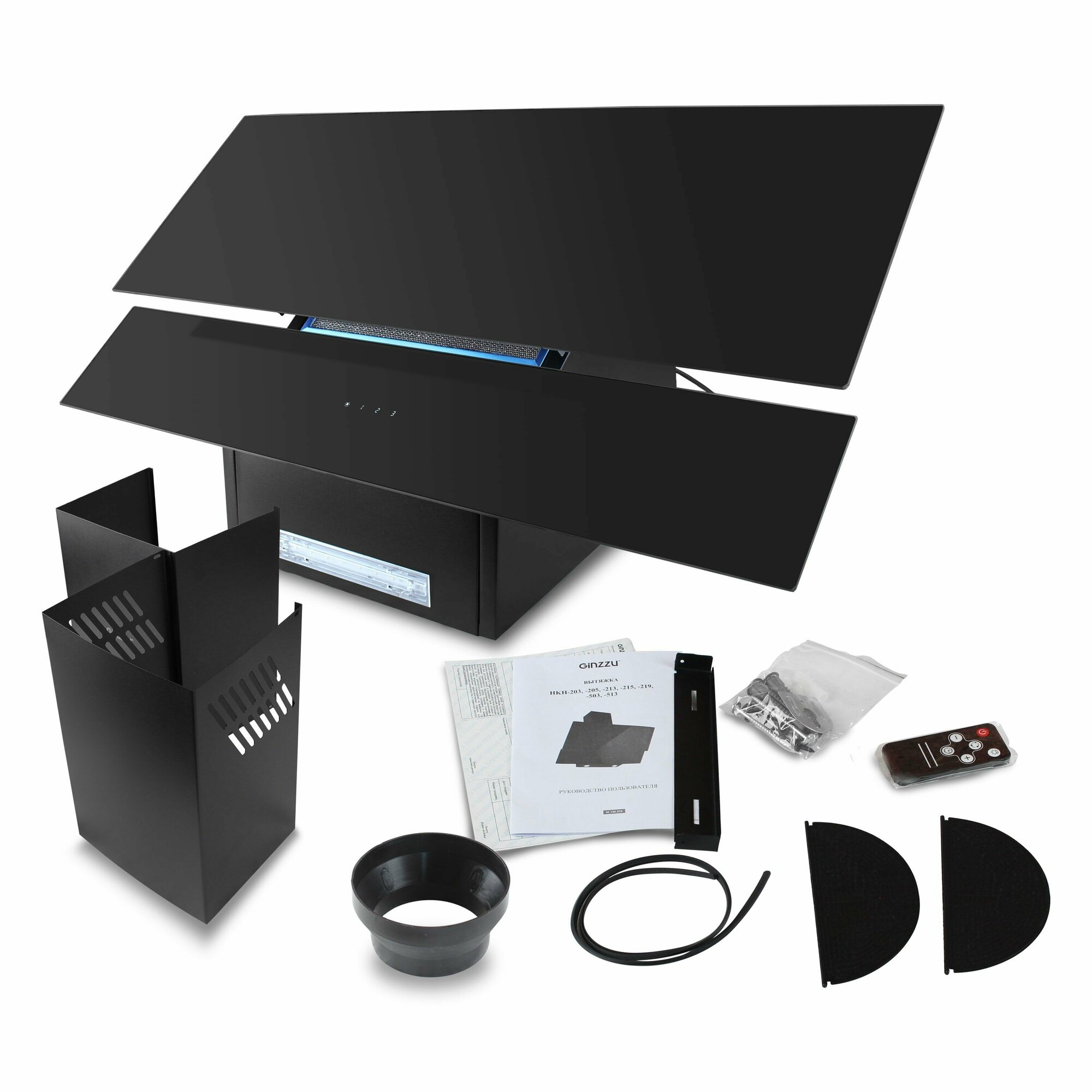 Вытяжка наклонная HKH-513 Ginzzu черное стекло, 90см, сенсорное управление 650м3/час интересное: