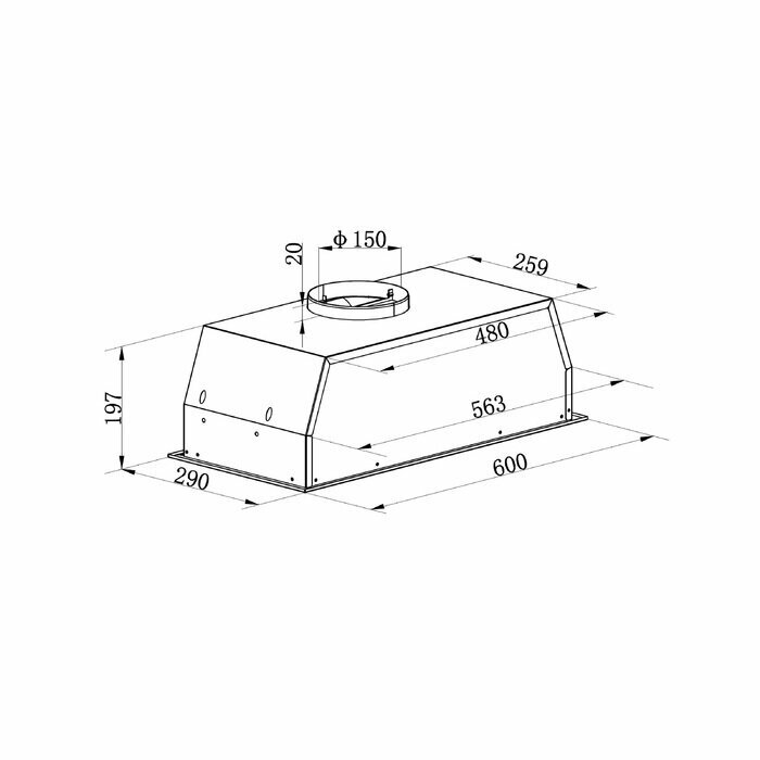 Кухонная вытяжка MAUNFELD/ Кухонная вытяжка, полновстраиваемая , 3 скорости, 870 м3/ч, механическое управление, уровень шума 44 дБ, цвет белый, угольный фильтр CF150 (не идет в комплеккте)