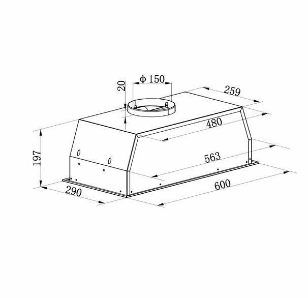 Кухонная вытяжка MAUNFELD/ Кухонная вытяжка, полновстраиваемая , 3 скорости, 870 м3/ч, механическое управление, уровень шума 44 дБ, цвет белый, угольный фильтр CF150 (не идет в комплеккте)
